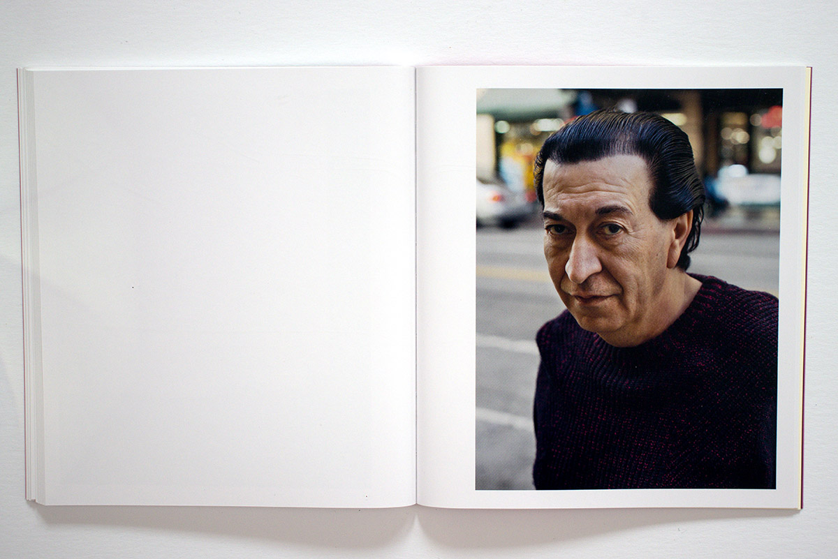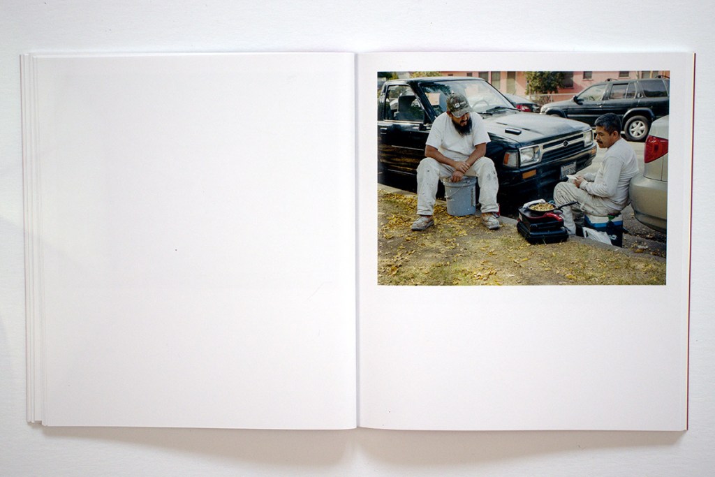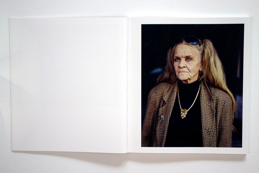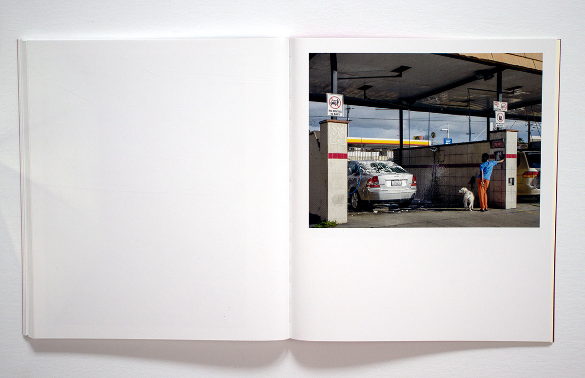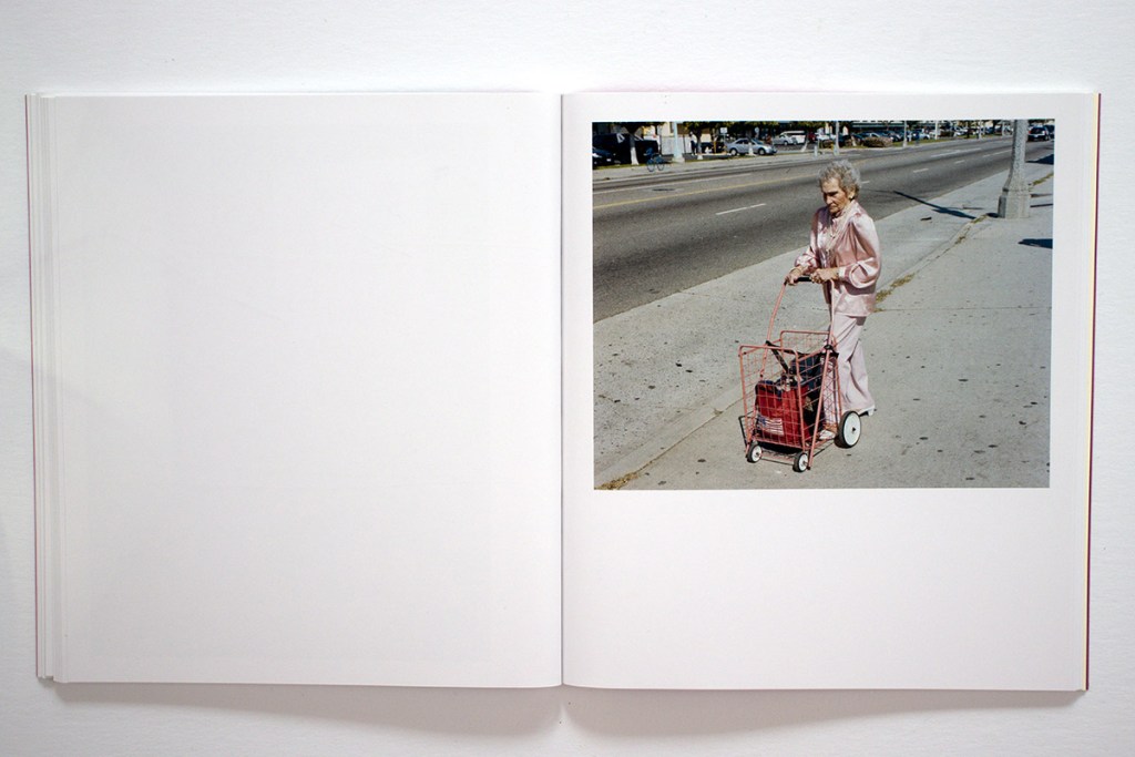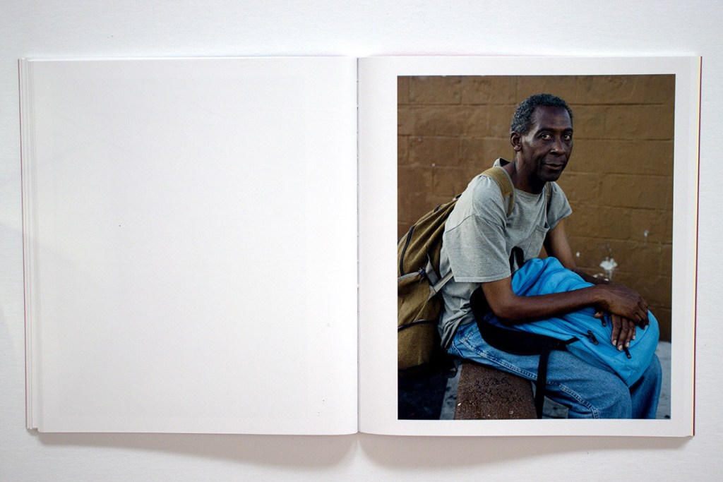 Let me explain the simple part first. There are 36 color photographs, one to a page spread. Ten or so are portraits where the subject is engaging the photographer directly, and in another 9 the subject is possibly unaware of being photographed. The rest can be categorized as things and places. In terms of sequencing, images of people alternate in singles or doubles with images of places and things, so that the people are contextualized by the places around them – simple but effective. The compositions mirror the everyday act of seeing and appear artless.