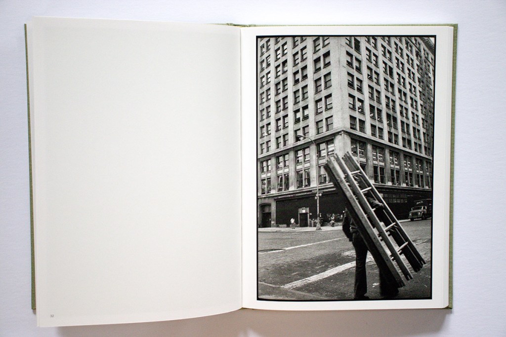 If you photograph enough and cultivate your eye as Cohen did, you are rewarded with photographs that stand out as memorable visual moments, in Tall Socks for example the image of a man carrying a ladder. The angles, lines, and rectangles of the ladder in the foreground are layered on top of the angles, lines, and rectangles of windows in a building in the background, setting up a dynamic of movement and tension as well as a visual pun comparing the two.