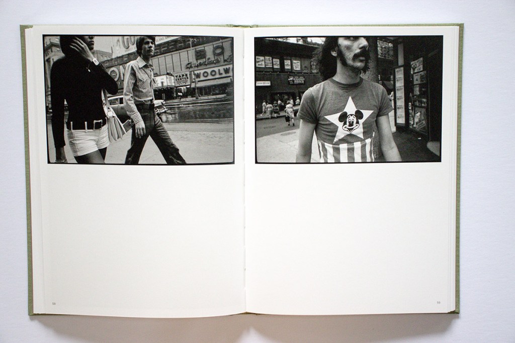 Cohen seems to have absorbed the influences of other contemporary photographers of the time. There are echoes of Lee Friedlander’s angles and visual puns, of Garry Winogrand’s energy and intensity of observation, and of Diane Arbus’ getting up close and using flash. Cohen does his own thing however.