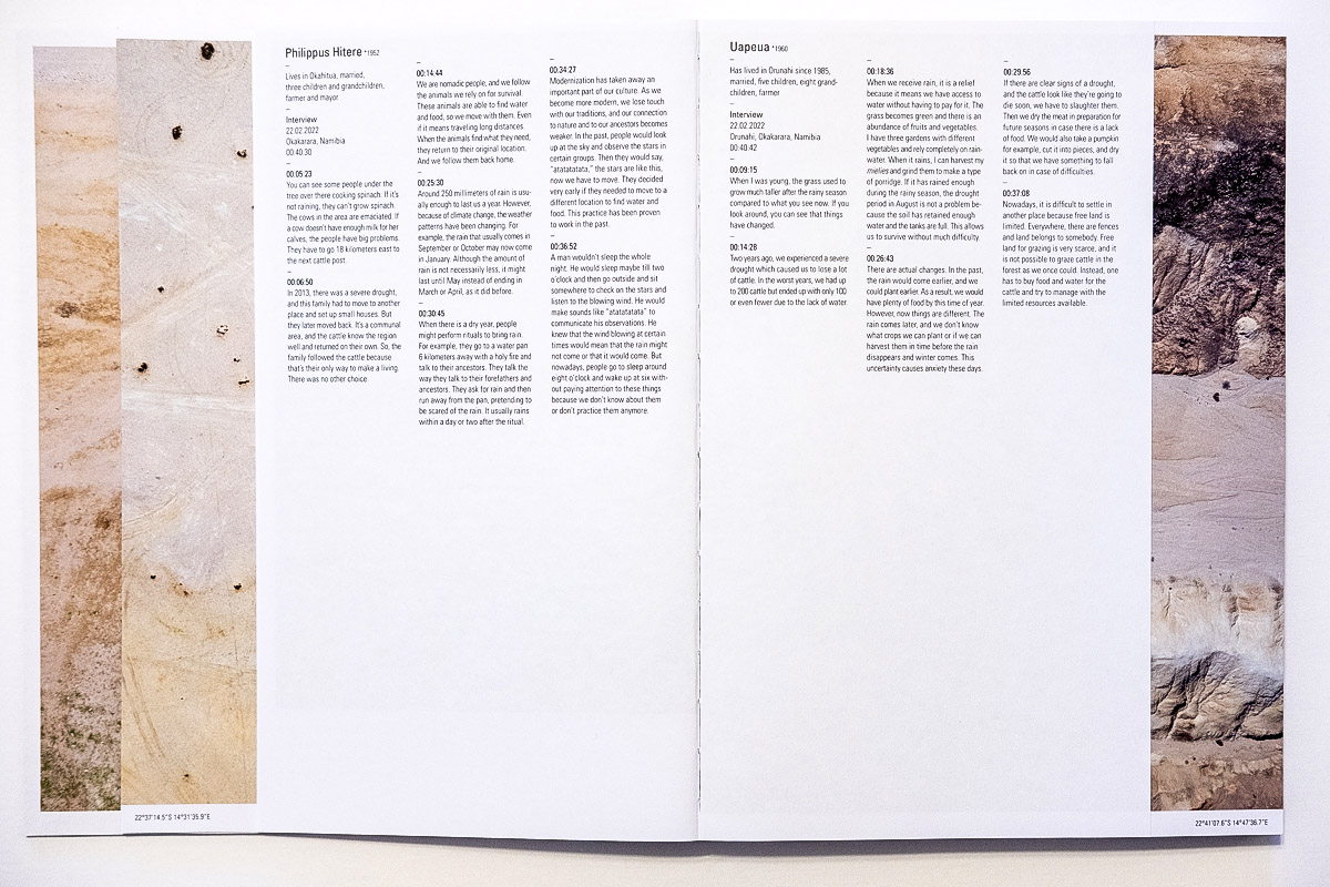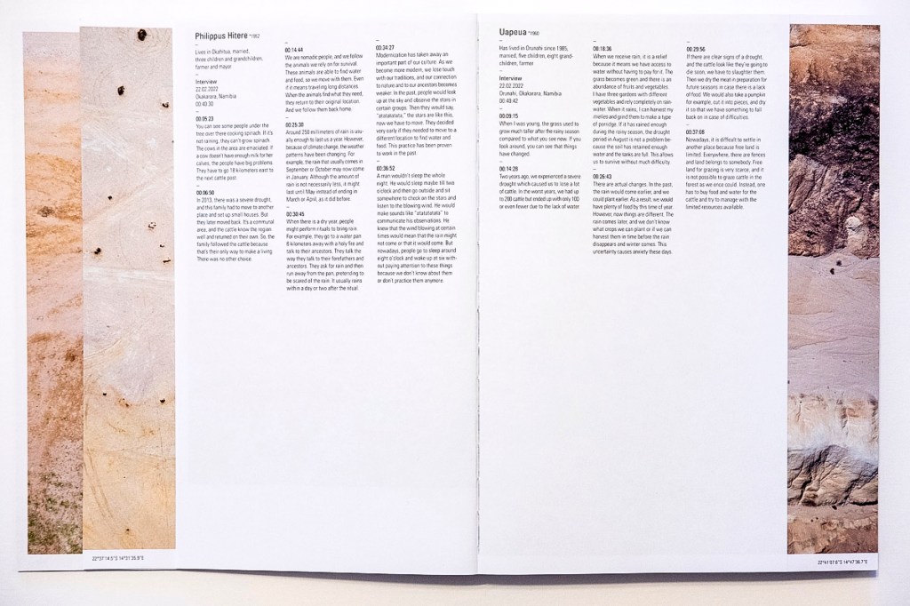 Bibel’s work here is notably rigorous on a number of levels. To begin, the use of a variety of non-photographic, historical resources, like scientific reports dating as far back as 1896, provide a depth of understanding about climate change and the origins of our scientific understanding of the phenomena. Set alongside the images with finely produced newsprint paper, the reader also gets a snippet of the International Panel on Climate Change (IPCC) Sixth Assessment Report at the end of the book. These texts help to contextualize the images within but also serve as a useful contrast. Bibel seems to be saying that we need a more comprehension “vision” of the climate crisis, one that ranges from the more abstract scientific discourse to the capturing of lived reality that is possible through photographic practice. The variety of textual references abounds in other ways as well, ranging from a section of text by 19th century German poet and writer Theodor Storm to more academic narrations of landscapes, such as that on the deserts of Namibia by scholar Rosa-Stella Mbulu. An essay by Christiane Stahl towards the end of the book contextualizes the work further, speaking to its merits.
