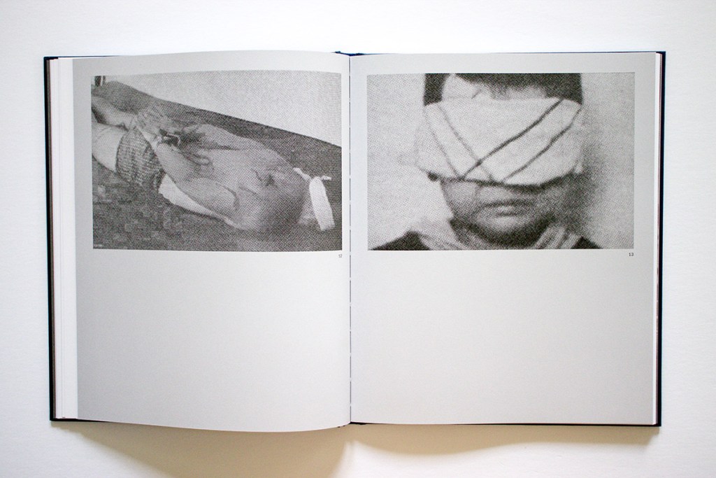 The book is organized around seven series of photographs, each followed by pages of explanatory texts that correspond to the images on the preceding pages. The texts are printed on different colored paper and they identify and provide information about the pictures. The photographs are uninflected and simple, usually with a straight-on frontal angle of view. Most are color, but there are some black and white photos from newspapers or videos. There is also a real color photo pasted on a page over the printed version.