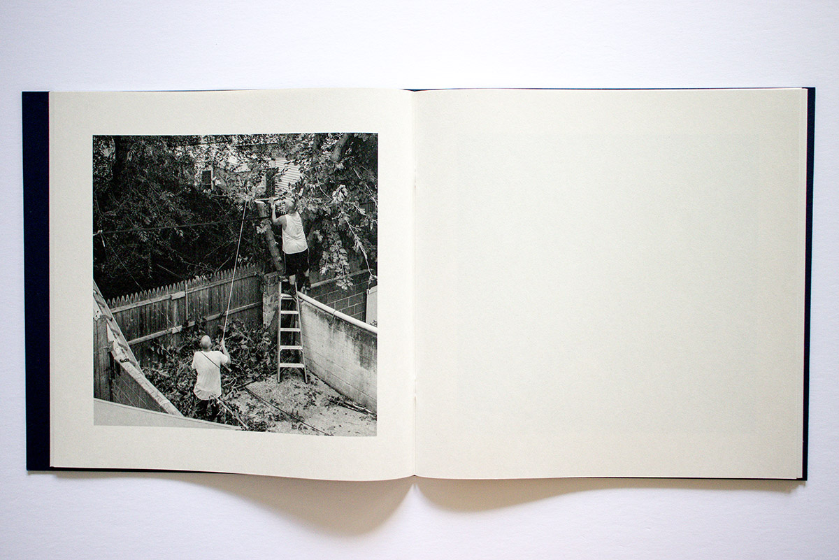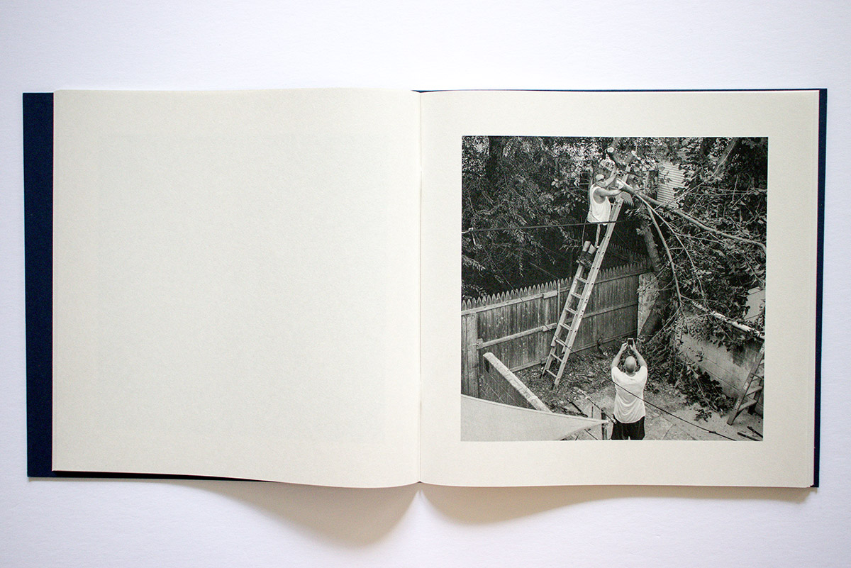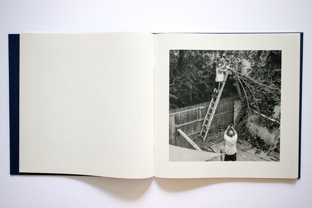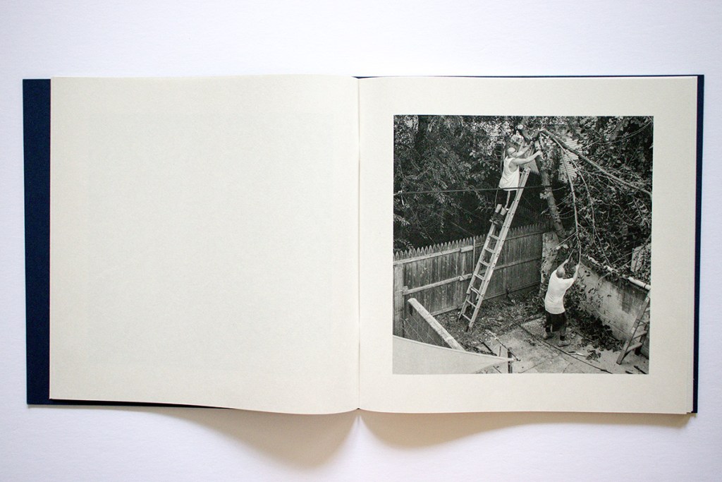 I looked at the pictures briefly when I picked up the book. Got it, I said. I see what’s going on. It’s a series of photos that presents a slice of reality – a sequence of 27 photographs of two men cutting down a tree in an urban back yard. It’s a mundane but artistically resonant moment. Beauty and significance in ordinary, everyday events. Common things that become interesting if you consider them closely. Universal human experience in the particular. The power of looking and seeing through photography. Great book idea, I thought. Boundary pushing and risk-taking: that’s what I want to support.