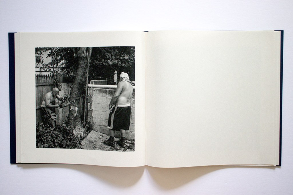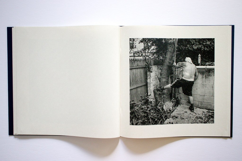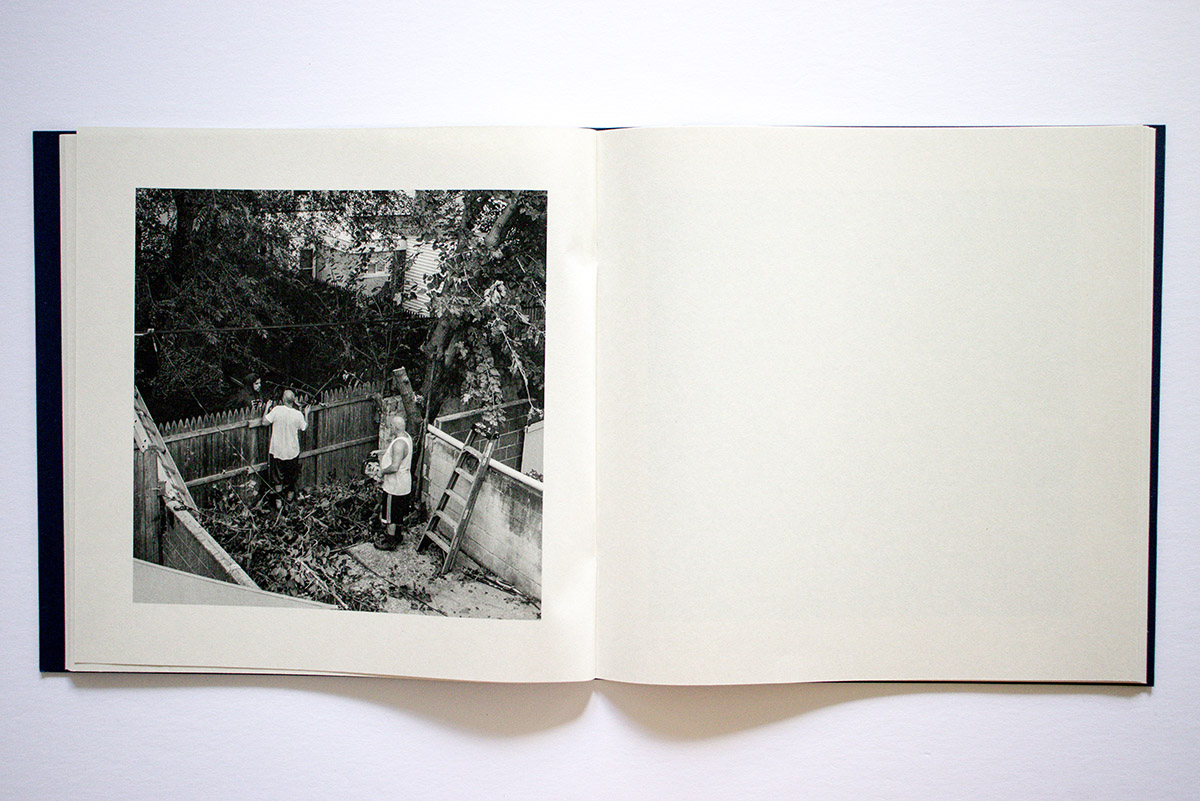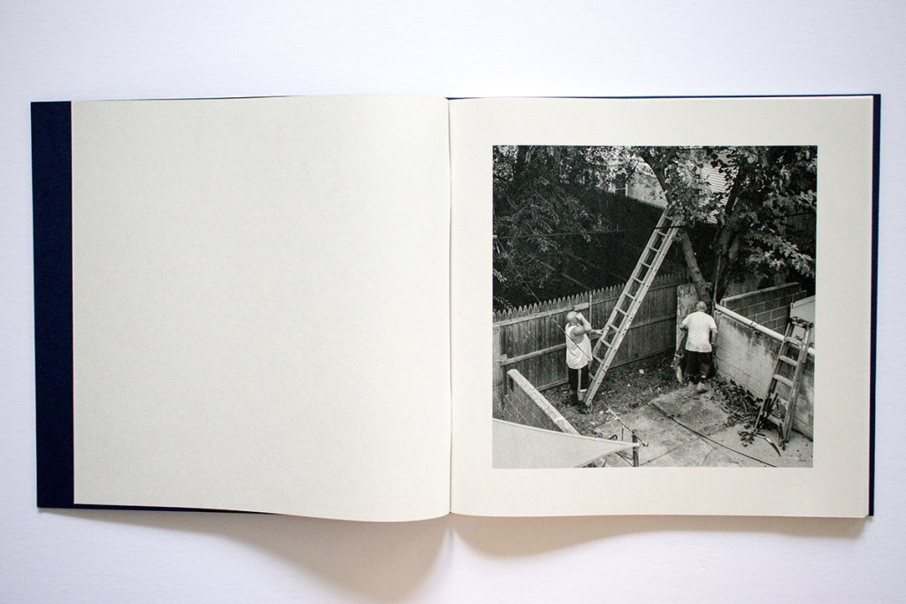 I looked at the pictures briefly when I picked up the book. Got it, I said. I see what’s going on. It’s a series of photos that presents a slice of reality – a sequence of 27 photographs of two men cutting down a tree in an urban back yard. It’s a mundane but artistically resonant moment. Beauty and significance in ordinary, everyday events. Common things that become interesting if you consider them closely. Universal human experience in the particular. The power of looking and seeing through photography. Great book idea, I thought. Boundary pushing and risk-taking: that’s what I want to support.