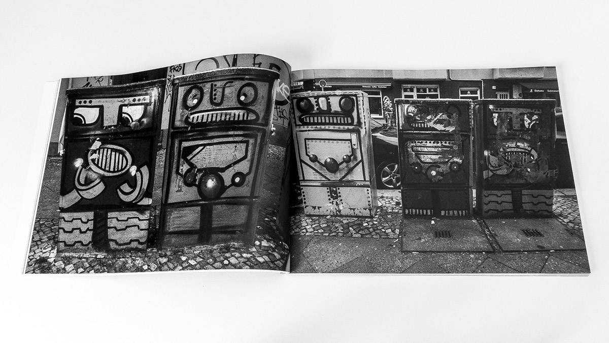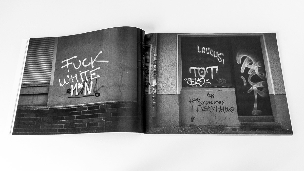 Social scientists distinguish between space and place. Space is a location defined by size, distance, and boundaries. Place, on the other hand, is about the social characteristics of these physical locations. Places contain meanings that are derived from the people, social practices, and cultures that comprise them. Meaning becomes emplaced in physical, often human built, environment. In this way, Kaushik Mukerjee’s Visible Voices: Graffiti Across Berlin, which features photographs of everyday graffiti from the neighborhoods of Schöneberg, Wedding, and Mitte, Berlin,is a photobook about the making of place. While the photos featured in this work differ from the large, commissioned murals also characteristic of Berlin and other cities, this bottom-up approach to street art nonetheless contribute to a definition of Schöneberg, Wedding, and Mitte, with each individual piece representing a political and aesthetic statement.