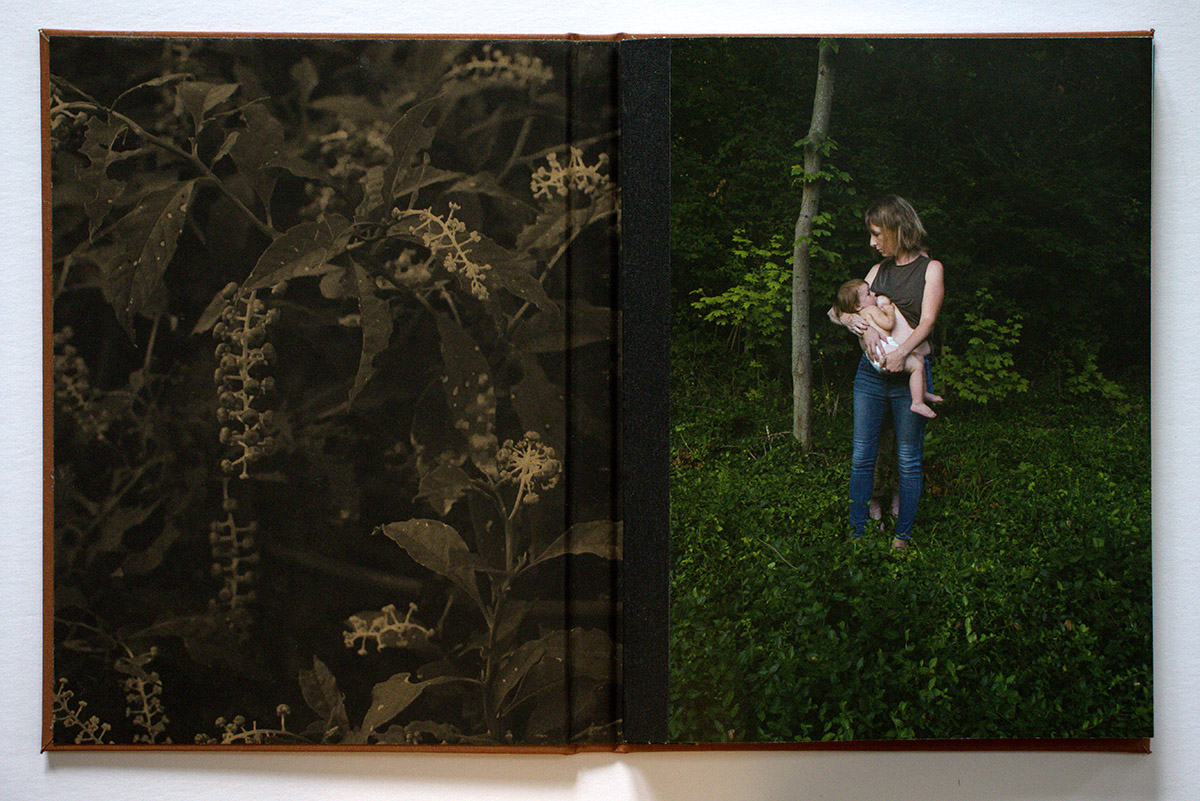 There is no text in the book other than the captions at the end. The book’s visual narrative works without them, but they add a layer of meaning. Thanks to the captions we see that there are several portraits of Grant with one of her daughters: “As My Mother, So I,” “Me Gripping Baby,” “Invisible Mother,” “Mother Cover.” In total six captions include the word “mother” or “mom.” Besides being about our place in nature, the many photographs of Grant’s children in the book set up another theme – being a mother – with its attendant emotions and the strength and fragility of its relationships, especially given the daunting reality of mothering on a damaged planet.