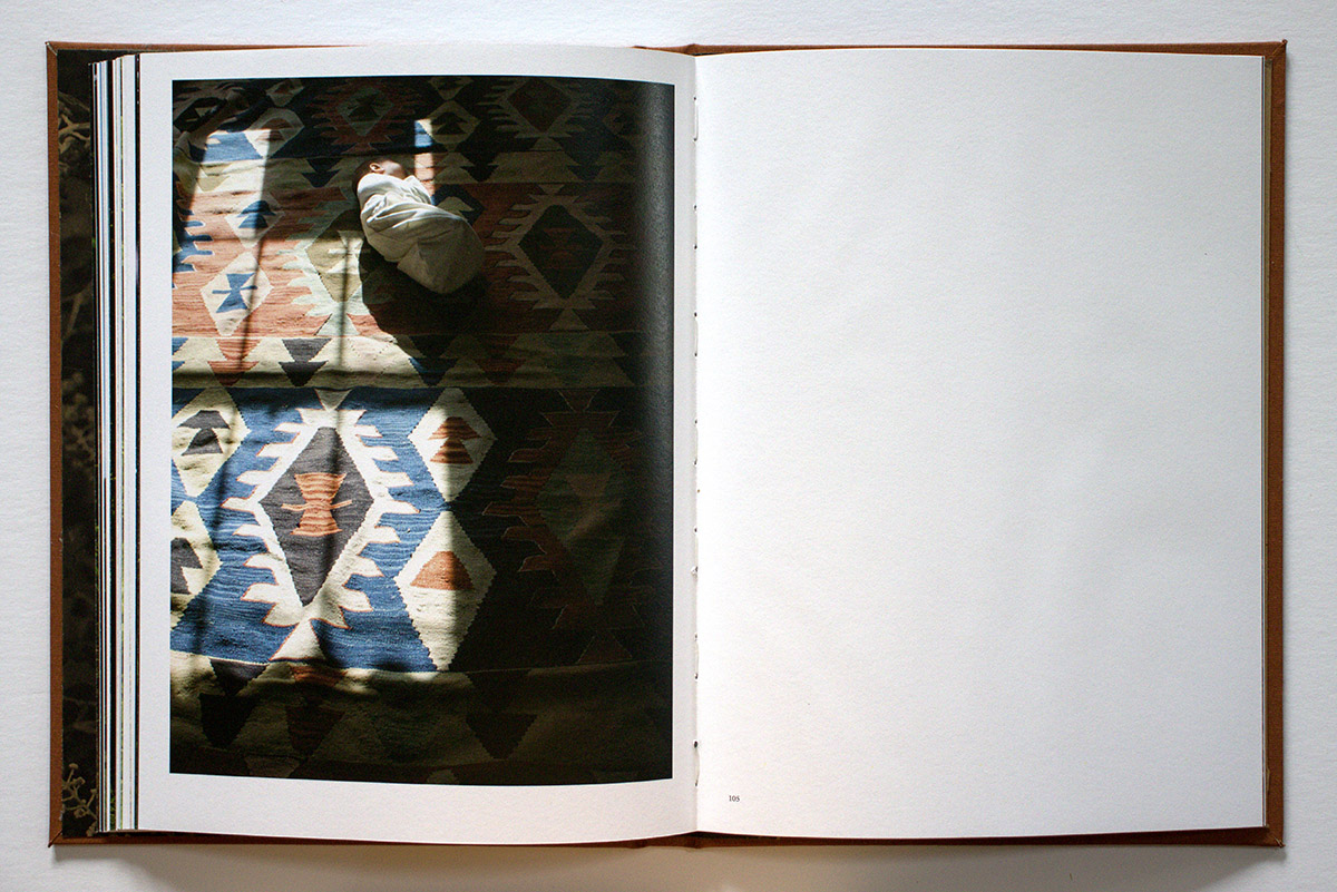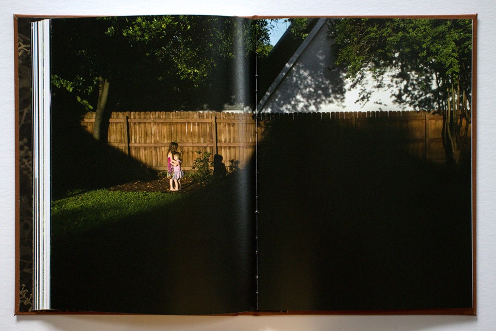 The sequencing is varied: full-bleed single, page-and-a-half, or two-page spreads; portrait layouts with narrow or somewhat wider margins; and blank pages here and there for pacing. Grant has an eye for deep, dramatic shadows, and they are printed in many cases without much if any detail, a move that heightens the intensity of the visual moment.