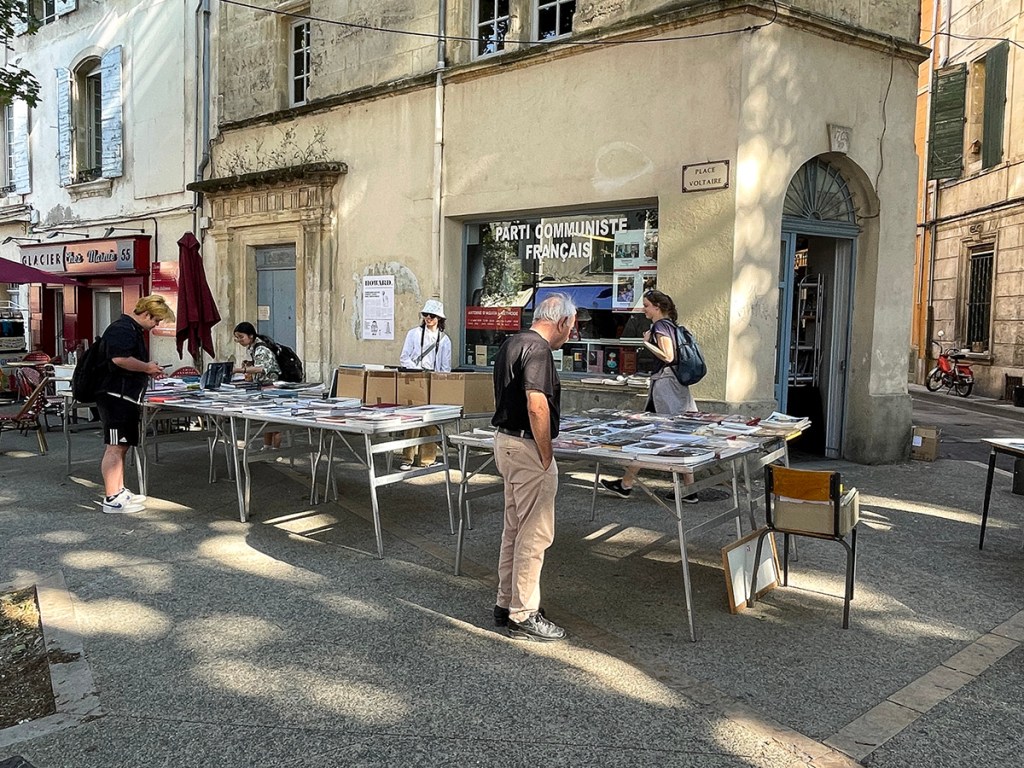 Photobooks were visible everywhere this year in Arles at the 2025 photo festival. The official program included a book market as well as prizes for photobooks in several categories. The book market took place in two separate venues, but there were also a number of unofficial events, including the Mirage book market and numerous book signings at bookstores and galleries. Many of the exhibition venues also displayed and sold books. If you liked photobooks, Arles was a good place to be.
