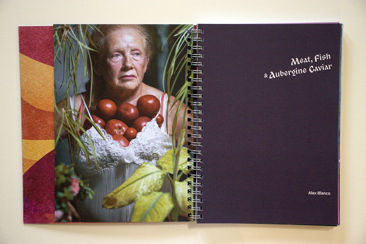 Photobooks are a great medium for telling stories, but also for re-creating emotional landscapes. Alex Blanco’s Meat, Fish, and Aubergine Caviar does both and also mixes in memories, cookbook recipes, and idealized fantasy.