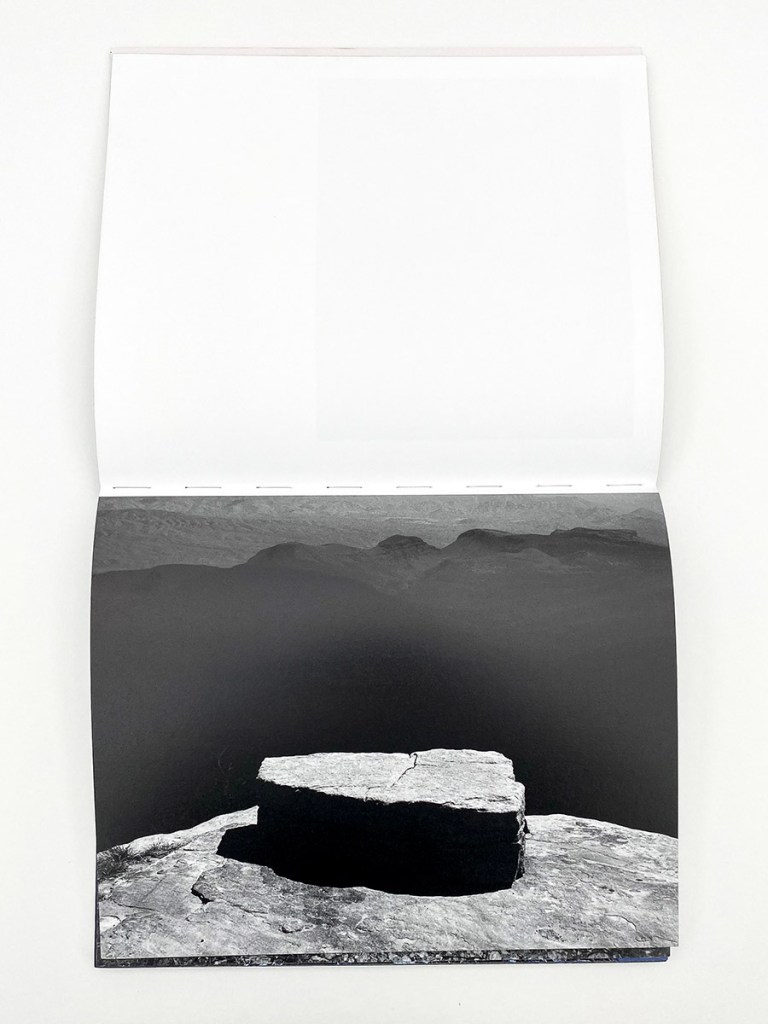 To really engage Glass Mountain, I went back and revisited Lundgren’s first books with Radius Books, Transfigurations (2008) and Matter (2016). The first offers a more traditional approach to landscape, composed of lush black and white prints of the southwest, presenting an understanding of landscape that is as beautiful as it is familiar. The pictures in Transfigurations hint at something more metaphysical, it is a very ambitious book (introduction by Rebecca Solnit), but in the end these just feel like hints. Matter picks up here, boldly venturing into something much more abstract. It’s a book that strives to articulate more mystical understanding of landscape by deeply exploring microscopic views of geology and the elements, an effort to discover macroscopic experiences in the harsh realities of earth (a particularly poignant picture shows an animal skeleton decaying in some kind of mineral sludge bath). Ultimately, the pictures utilize only one compositional strategy (object clearly in the middle of the frame) and the photographic space flattened by the photographer’s use of flash. This does result in many interesting pictures, but it also feels blunt and rigid at times.