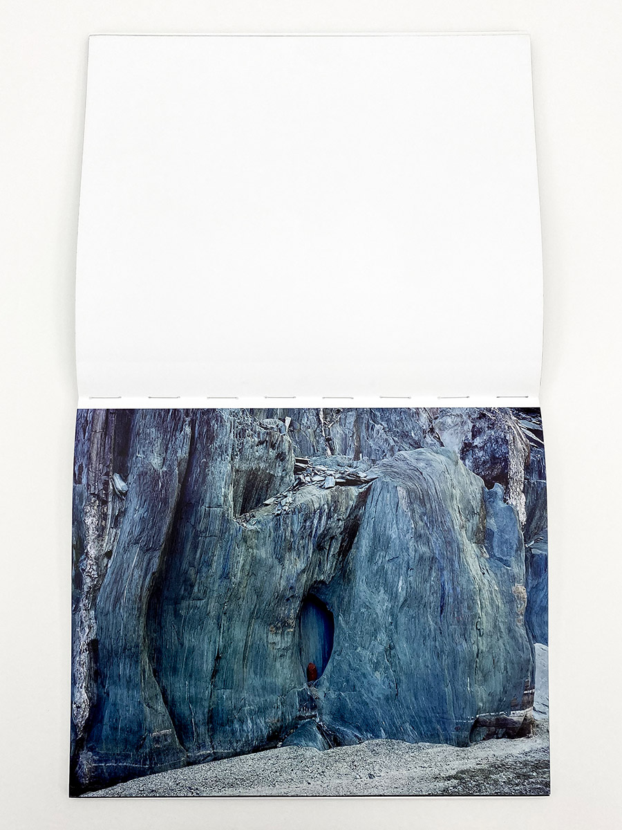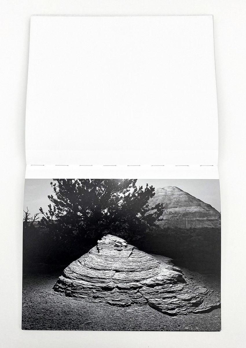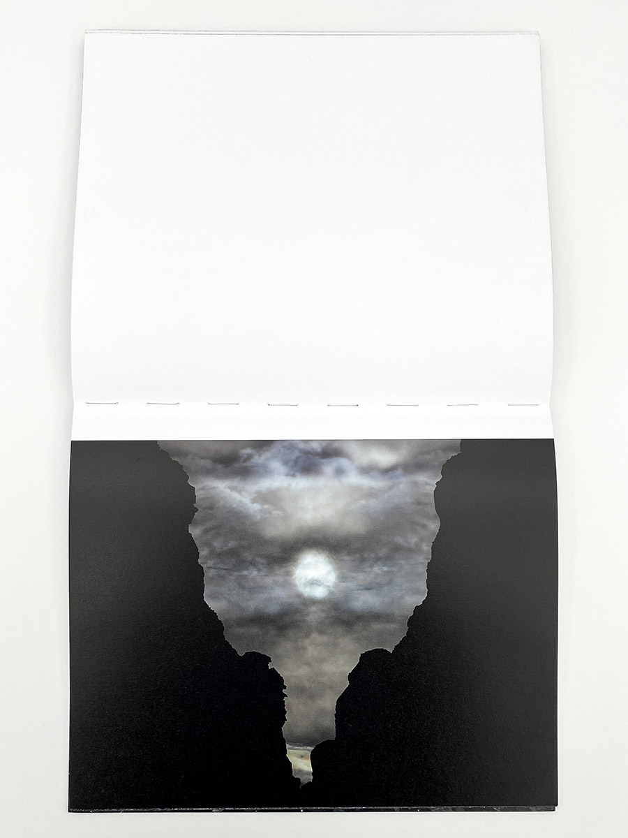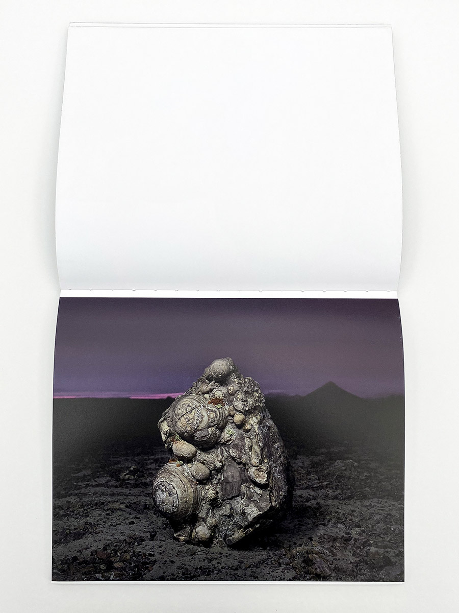 I find all this – the petroglyphs, Don Juan, awe-inspiring views of the star, hikes under the brutal desert sun, and a stark awareness about the distinctions between human and geological time – as the perfect entry point for understanding the remarkable and enigmatic photographs in Glass Mountain, the new book of landscape photographs by Michael Lundgren published by Stanley/Barker. It is an exploration of some of the deepest mysteries we know, depicted in the unlikeliest forms and materials – western wastelands, tidal pools, crooked cacti, an abandoned well, and shards of opal, each pointing the viewer towards histories and experiences much greater than our own. The design and production of the book offer a tremendous vehicle for explaining Lundgren’s essential ideas. Like the petroglyph’s found at the bottom of Devil’s Canyon, the cover is etched with small silver circles, spelling out the photographer’s name and book title but also functioning as a primitive map of the stars. Opening the book feels reminiscent of a psychedelic experience, the binding finished in a reflective paint that shines mesmerizing glimpses of rainbows when held to the light just right.