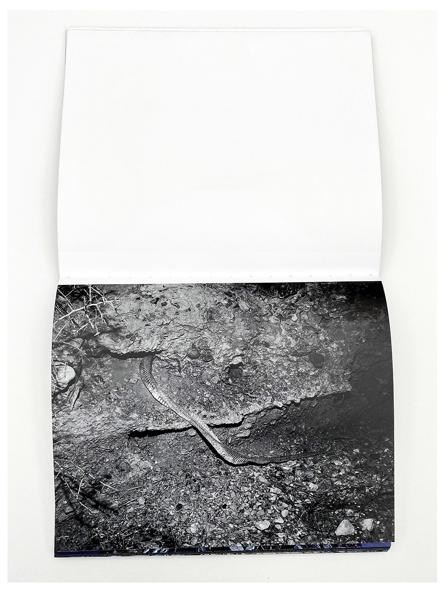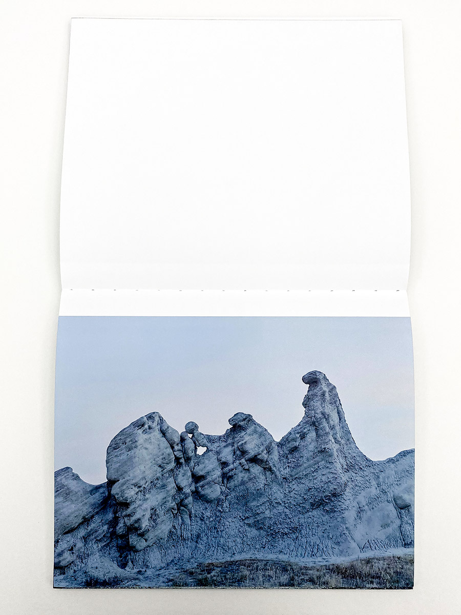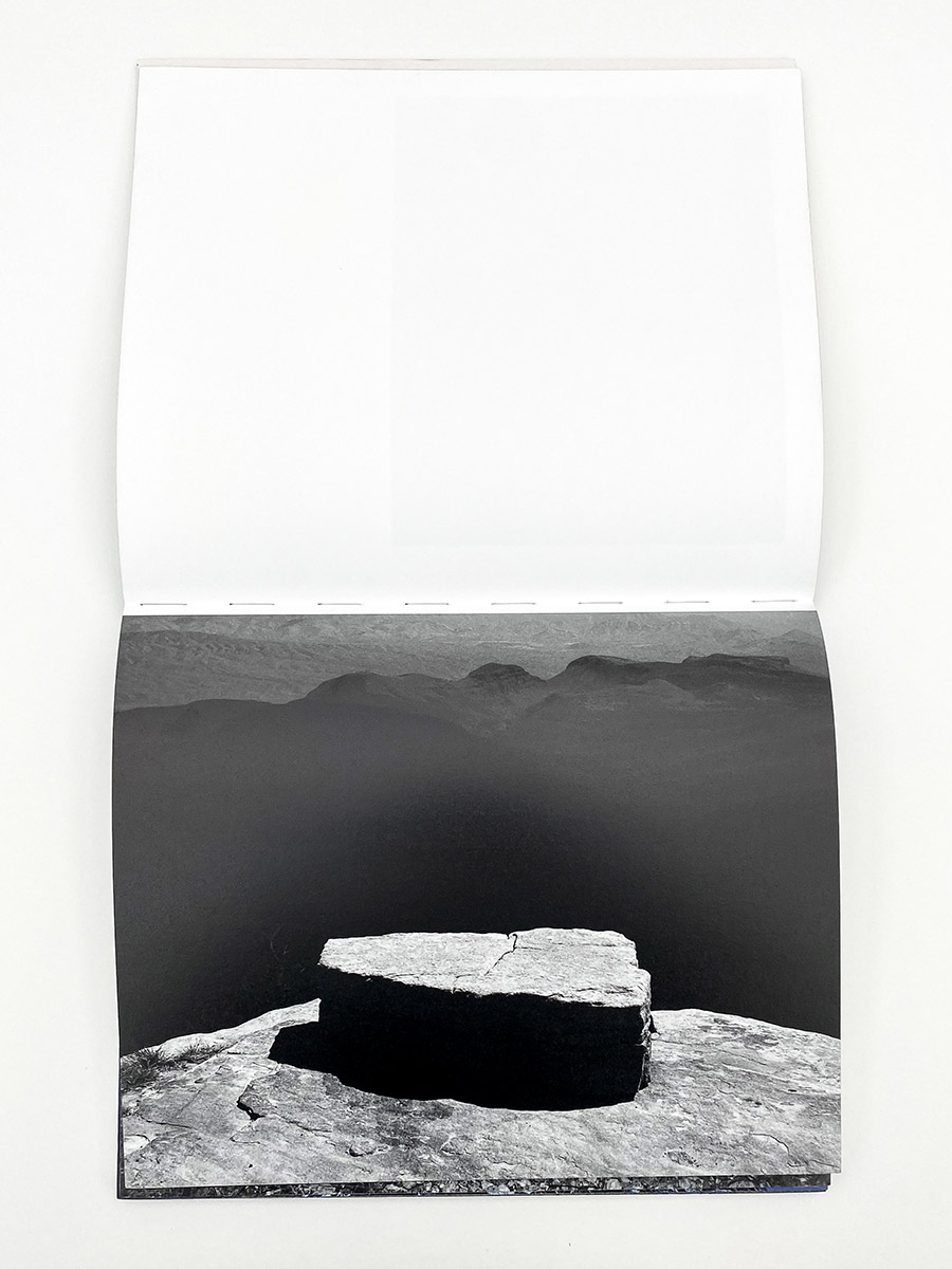 I find all this – the petroglyphs, Don Juan, awe-inspiring views of the star, hikes under the brutal desert sun, and a stark awareness about the distinctions between human and geological time – as the perfect entry point for understanding the remarkable and enigmatic photographs in Glass Mountain, the new book of landscape photographs by Michael Lundgren published by Stanley/Barker. It is an exploration of some of the deepest mysteries we know, depicted in the unlikeliest forms and materials – western wastelands, tidal pools, crooked cacti, an abandoned well, and shards of opal, each pointing the viewer towards histories and experiences much greater than our own. The design and production of the book offer a tremendous vehicle for explaining Lundgren’s essential ideas. Like the petroglyph’s found at the bottom of Devil’s Canyon, the cover is etched with small silver circles, spelling out the photographer’s name and book title but also functioning as a primitive map of the stars. Opening the book feels reminiscent of a psychedelic experience, the binding finished in a reflective paint that shines mesmerizing glimpses of rainbows when held to the light just right.