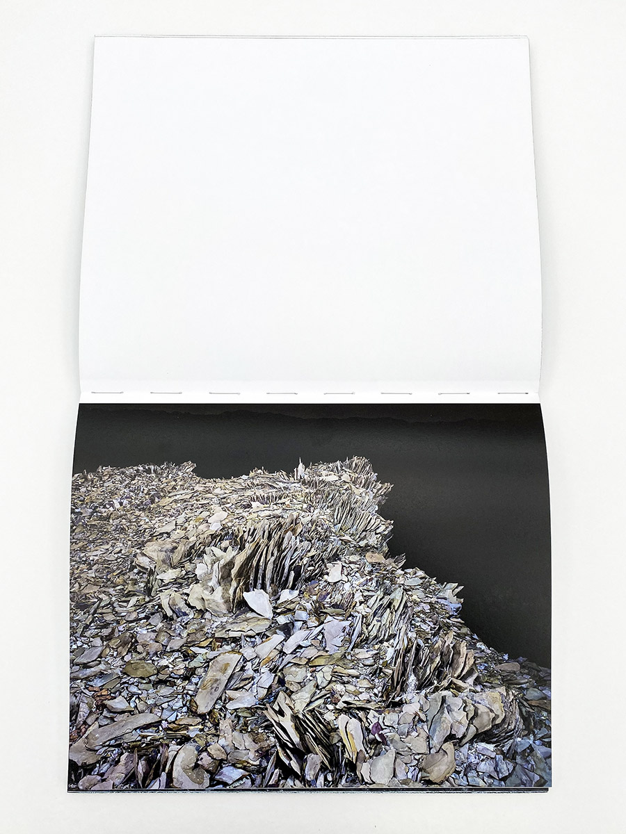 To really engage Glass Mountain, I went back and revisited Lundgren’s first books with Radius Books, Transfigurations (2008) and Matter (2016). The first offers a more traditional approach to landscape, composed of lush black and white prints of the southwest, presenting an understanding of landscape that is as beautiful as it is familiar. The pictures in Transfigurations hint at something more metaphysical, it is a very ambitious book (introduction by Rebecca Solnit), but in the end these just feel like hints. Matter picks up here, boldly venturing into something much more abstract. It’s a book that strives to articulate more mystical understanding of landscape by deeply exploring microscopic views of geology and the elements, an effort to discover macroscopic experiences in the harsh realities of earth (a particularly poignant picture shows an animal skeleton decaying in some kind of mineral sludge bath). Ultimately, the pictures utilize only one compositional strategy (object clearly in the middle of the frame) and the photographic space flattened by the photographer’s use of flash. This does result in many interesting pictures, but it also feels blunt and rigid at times.