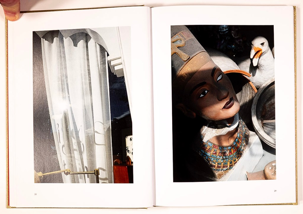 When I started paging through this book, I was reminded of the classic American photography book, William Eggleston’s Guide (1976). Similar in size (Eggleston’s Guide is 9 ¼” x 9 ¼”) and also consisting entirely of color images, Eggleston’s photographs of the rural American South in a sense give the same feel as Groht’s of a travel guide (hence the title). The subject matter of Eggleston’s photographs generally offers wider or more distant views than Groht’s: landscapes, home interiors, full figure and group portraits. But what fundamentally links both books, is a sense of the familiarity of the scenes presented, the everyday, coupled with the uniqueness of the recognizable and the quotidian. Nothing seen in either book is out of the ordinary and yet both Eggleston and Groht bring an “insight” to their visions and renderings of space, details, objects, human (and animal) subjects and, by inference, culture and history. A kind of productive confusion is created in the melding of inside and outside, interior and exterior, familiar and unfamiliar.