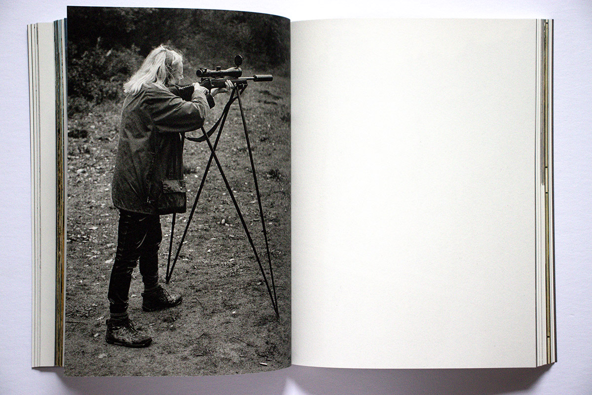 - A series of ten small photographs, that begin showing the author and that slowly morph into the mother, along with a series of texts by each. The mother writes about what hunting means to her, and Mejnertsen talks about her mother as an example and how she discovered photography.