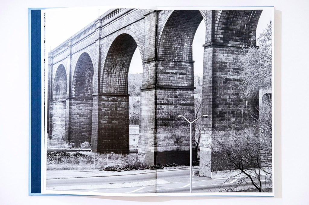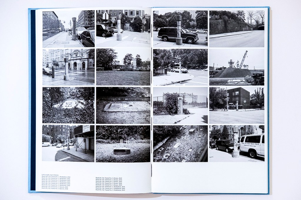 The monochrome palette and precise framing have some formal elements in common with the famous typographic work of Hilla and Bernd Becher. Yet, while Greenberg’s scenes are often people-less like the Becher’s well-known images of water towers and factories, they are still scenes. If Greenberg’s images are less immediately haunting, they gain their affective quality in other ways. We never lose sight of being in the world with Greenberg. Life is happening in and around the city. If there has been postindustrial decline, the water system, so vital, cannot so easily be discarded, removed or forgotten by society. We see old tires sit along a railway and road at High Bridge, Bronx and Manhattan, 2000. People attend church and go to work amidst Shafts 2b through 17b, Tunnel No. 3, Manhattan. Wastewater is flowing through Brooklyn and Queens. Pumping Station No. 4, Jamaica Water Supply, seems to have landed ominously in Queens on a residential street. Ventilators stand, graffitied and bird poo bedecked, as sentinels along the Old Croton Aqueduct in Yonkers. Old and new, the infrastructure channels, but also permits innumerable other flows of life, however apparently marginal.