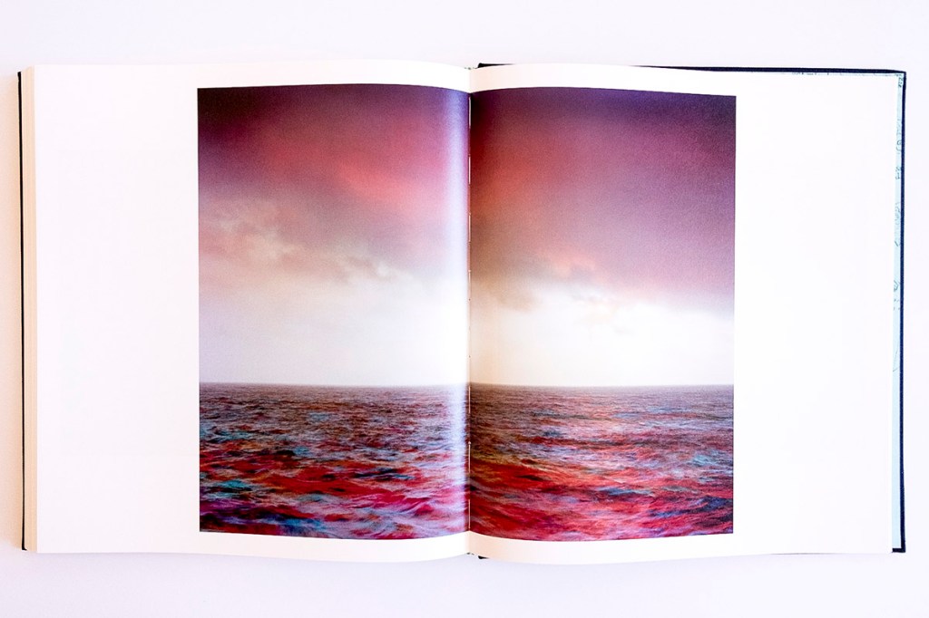The final book’s images, which are night images, put even a finer point on how this book is connected to Brodersen’s thinking about climate change. Amidst the blue-blackness of night, a stream of color emerges out of the corner of Brodersen’s frames: red, blue, green, magenta, gold, and more. Again, we get the scientific connection, although it may at first appear less obvious. What is on Brodersen’s mind? Much of the contemporary discussion of the climate crisis often comes back to “scenarios” and “alternatives,” “possible futures,” and pathways. The Intergovernmental Panel on Climate Change, better known as the IPCC, for example, often produces a series of scenarios for any climate predictions that it generates across its mathematical models bases on climatic data observations. As science does not provide definitive, although it does provide likely, answers to our questions about climate, Brodersen here is contemplating these issues in his unique way. Unlike the prior images in the series, where the lights proceed through the frame, here with the multi-colored lines, they stop in the middle of the sea, with the horizon seeming to be nearly gone, receding into the top of the frame as night deepens. It is here in this blackness that we find ourselves as human beings amidst the immensity of the natural world, and the history of the exploitation of it. To say where the trends will end, is to imagine a place in which the devastation can be suspended, like Brodersen’s lights extending into the apparent abyss. However obscure, it is here that we are left to dwell, in the dark tempest of the present and future. We must reckon with the myths and truths of the past, however brightly they continue to burn, and it is at that point that we might begin making new myths, new stories, and ultimately new trajectories to liberate ourselves out from the ones deep within which we once seemed to be so entrenched, however idle(ic).