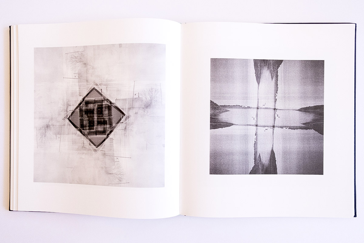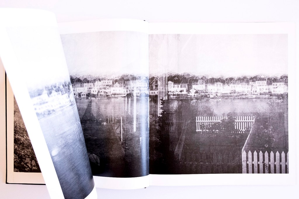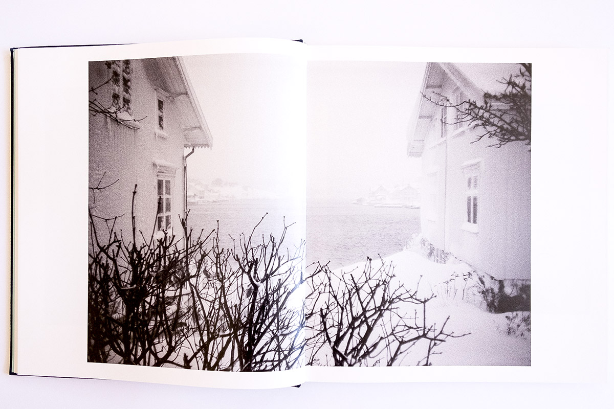 But as the reader moves past this brief inventory of Lyngør, Brodersen signals how the story will become more complex with his multiple exposure images that fold out across three-page-spreads: trees and windows intersect the horizon as the distant shoreline homes seem to be bumping into each other, pulled this way and that by some unseen hand. The foreground offers a little respite for the eye, as picket fences and yards are quieter, but it all forms a rich tableau of elements, jostling for space. Such symbolic imagery succeeds and benefits from, not only detailed observation of the book itself with its high-quality printing on pearlescent white paper, but from the book’s texts as well, which have been commissioned by the artist from a variety of journalists, scholars, and curators, making for rich reading material in multiple registers. The expense of this project was put to good use in more ways than one.