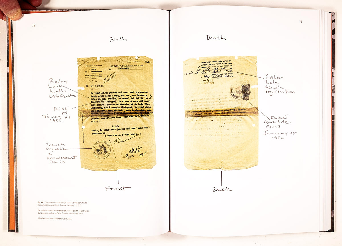 The book functions as a kind of archive of Loli’s investigation to find her mother, who vanished so soon after giving Loli birth. The 159 figures printed therein include historic documents (official as well as journalistic and familial), photographs of physical objects (Lola’s wedding ring, a powder compact Lola had among her possessions during her fatal hospital internment, a Bat Mitzvah gift to Loli and other assorted “memorabilia”), photographs historic and archival as well as more contemporary photographs Loli took between 2004 and 2023 as she traveled throughout Europe and Israel, tracing the movements of her mother’s life leading to her death (and Loli’s birth).