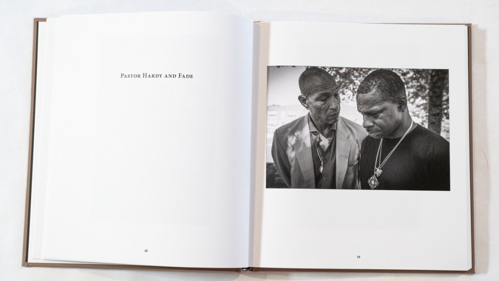 The black and white images are superbly composed and well made, the paper, 80# Titan Dull and the printing process offer the look and feel of having original darkroom images. Wieder’s compositional use of a large tone range emphasized the people, their expressions, and their interactions. The images brought me into the story, into the neighborhood, and offered me the chance to interact with the people.