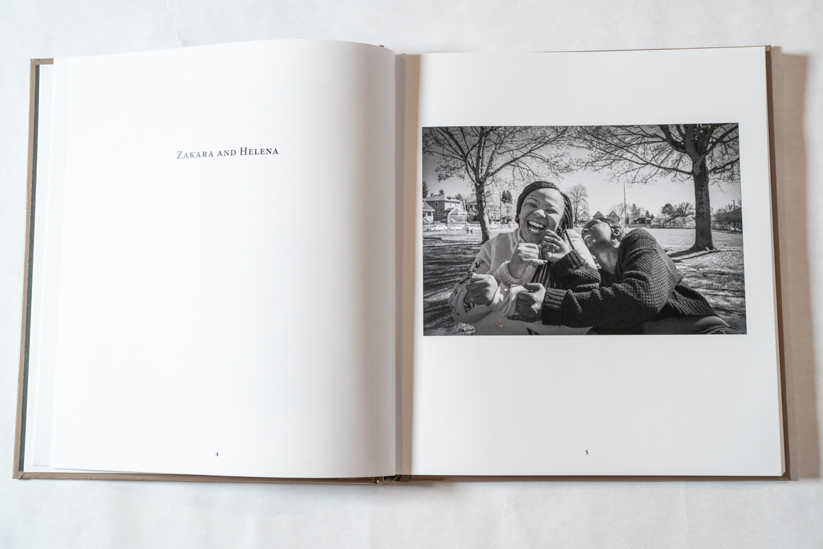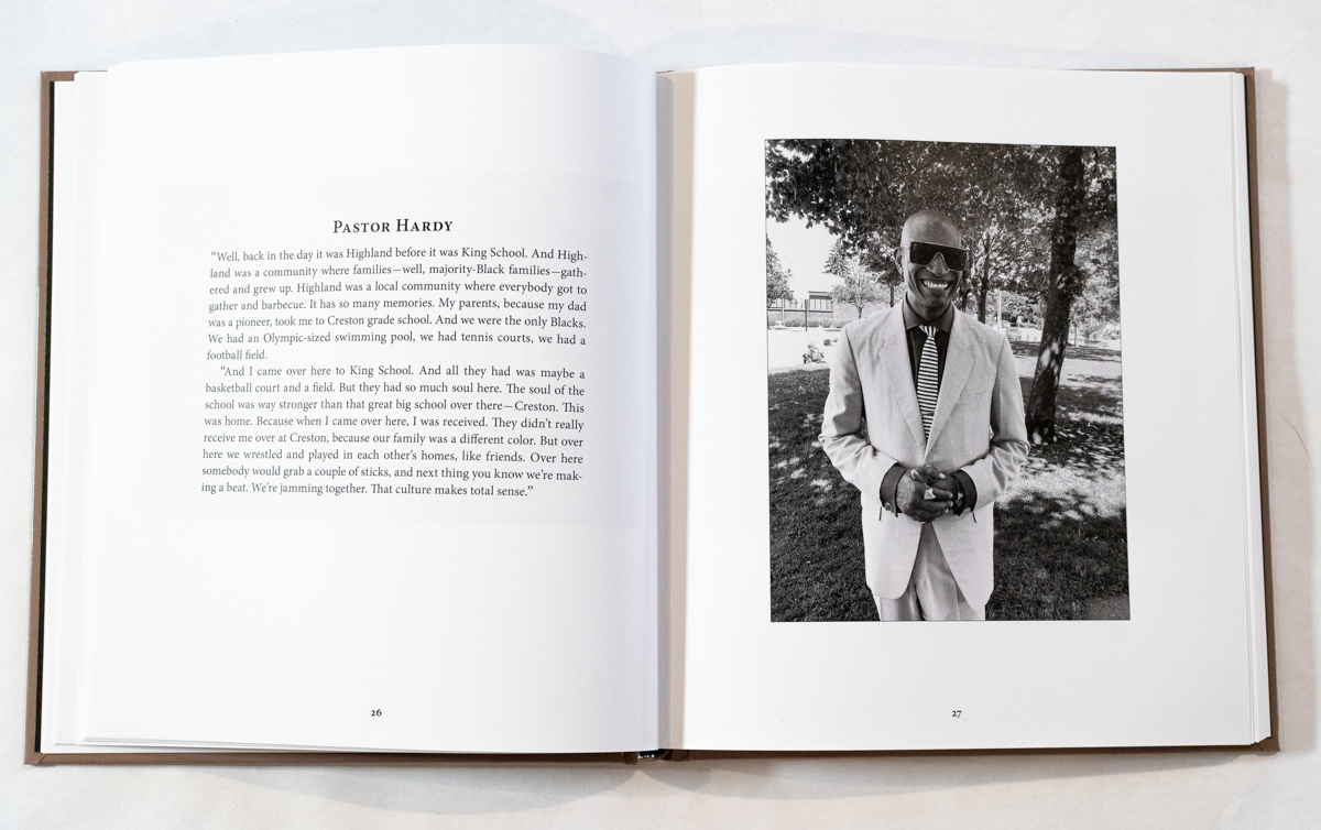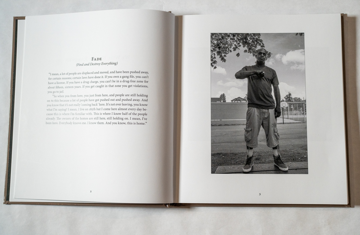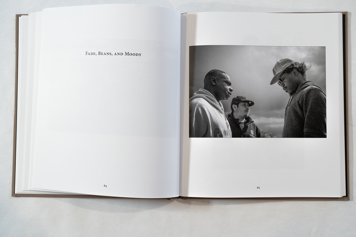 The black and white images are superbly composed and well made, the paper, 80# Titan Dull and the printing process offer the look and feel of having original darkroom images. Wieder’s compositional use of a large tone range emphasized the people, their expressions, and their interactions. The images brought me into the story, into the neighborhood, and offered me the chance to interact with the people.