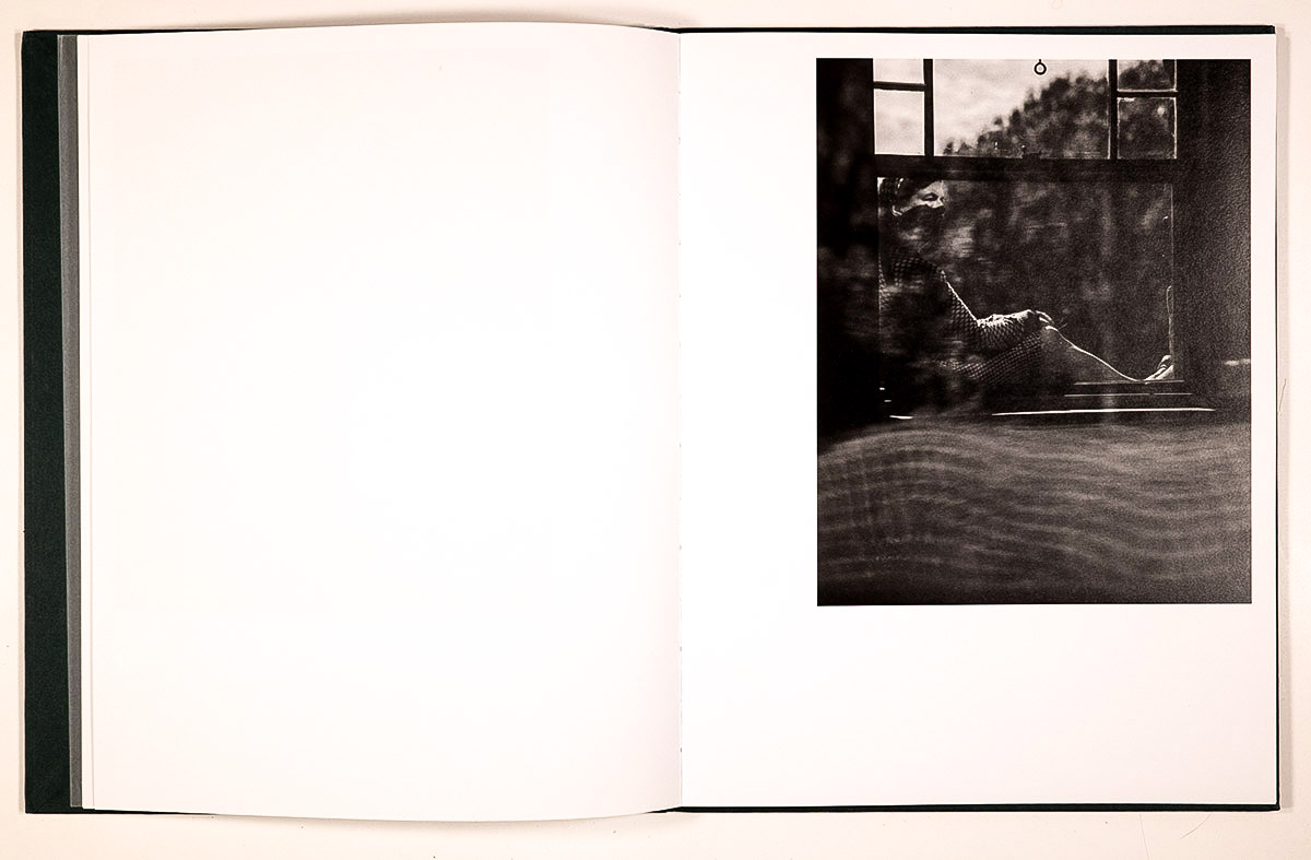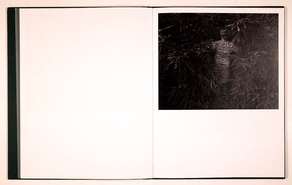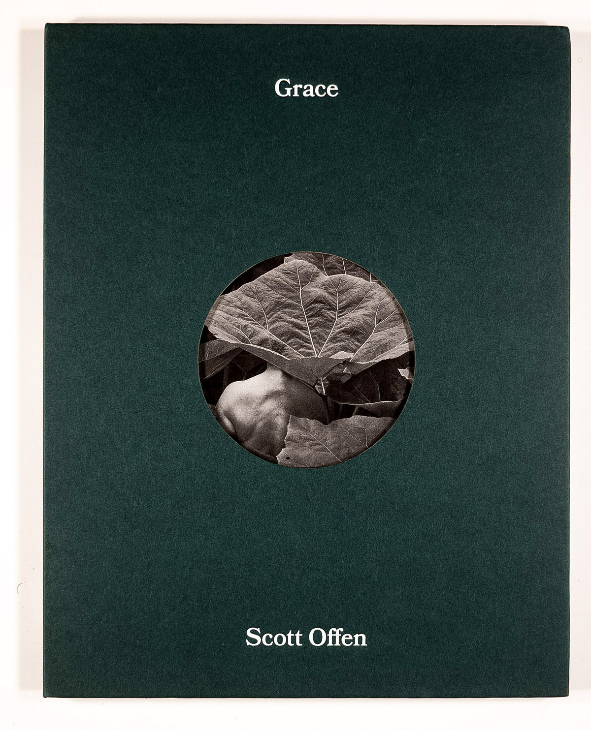 Scott Offen’s 2025 monograph Grace is a lovely book. As an object, its beauty confronts the viewer from the first look – the “porthole” opening cut into the cover gives a view of a tipped-in, beautifully subtle gray-scale image beckoning mysteriously to the viewer. The image, of a large, leafy plant mostly – but not entirely – concealing the flesh of a human figure behind it, is rendered in such subtleties of tone, detail and texture as to give the viewer pause. Upon opening the book, the spine of the cover falls away, exposing the sewn and glued case binding of the signatures, the title page covered by a thick and translucent sheet of vellum.