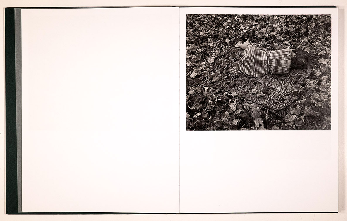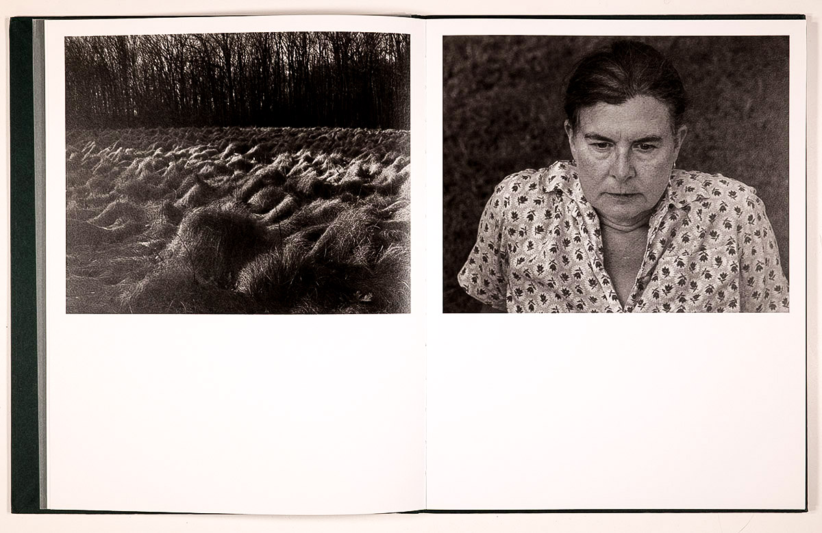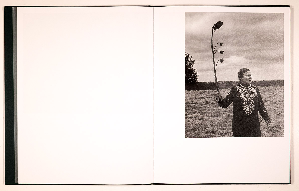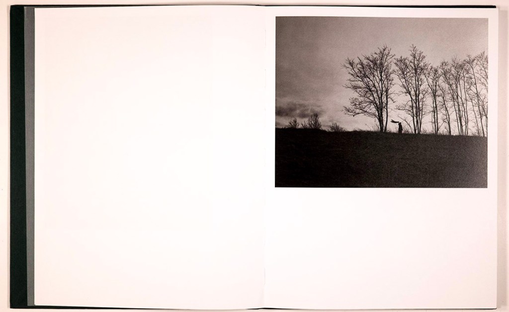 I go into such detail in describing Grace for two reasons. First, to give a sense of engaging with the book as object as being an inherently tactile experience. The tactility of the materials renders the book sculptural. The second reason is to try to communicate a perception of the book as intrinsically mysterious. Who are we looking at? What are we looking at? What is this place? How should we be looking? And who, or what, is Grace? In 30 of the book’s 51 images, we see the figure of Grace – often from a distance or back to the camera or in part or in some other way obscured. I found her presentation most compelling when seen thusly, as a figure of mystery, an indistinct, almost mystical figure. In the end text by Laura McPhee, she is described as “a Nordic goddess preparing for battle, a sylph resting beside a tree, a deity of wilderness.” Grace is a cipher, a figure defined as: “someone or something that is not understood; mystery or enigma” yet at the same time “a person or thing of no influence or importance; nonentity.” Yet this implied figure of myth that Offen conjures is, thankfully, not the perhaps expected female figure of youth and (conventional) beauty but is rather (in McPhee’s phrase) a woman “of a certain age” and in that age, in those markers of age, lies Grace’s beauty and magic. Fewer clear, direct views of Grace I felt might have intensified this impression even further.