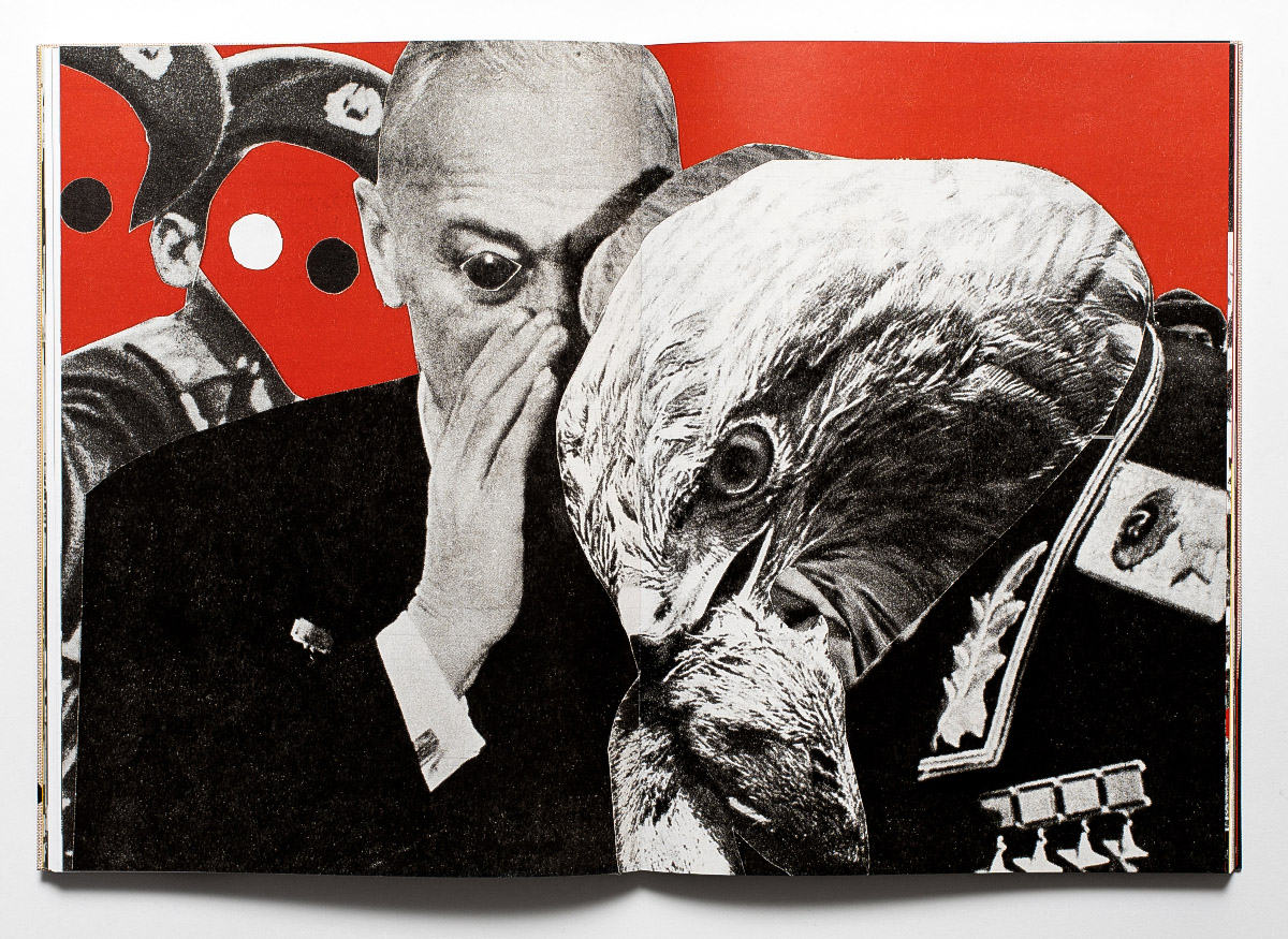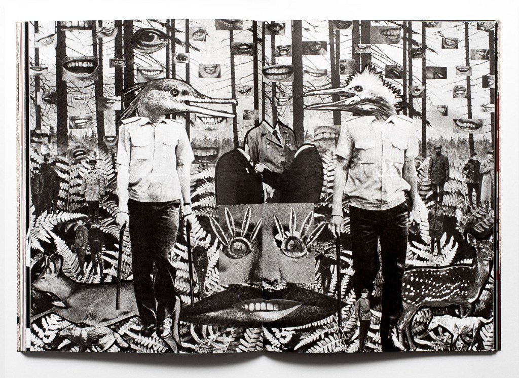 The method evolved further with Dada, an avant-garde art and literary movement born out of disgust with the war and the bourgeois socio-political order that led to global catastrophe. Cutting, pasting, distorting, and rearranging the images, Dada artists stressed the eroded trust in institutions and stated that the search for a different, new – although perhaps still not fully defined – language was a must. Driven by the same impulses, a century later, witnessing other devastating events in another part of the world, Belarus-born Masha Sviatahor also turns to collage.