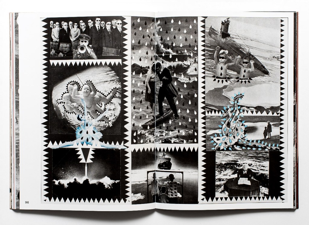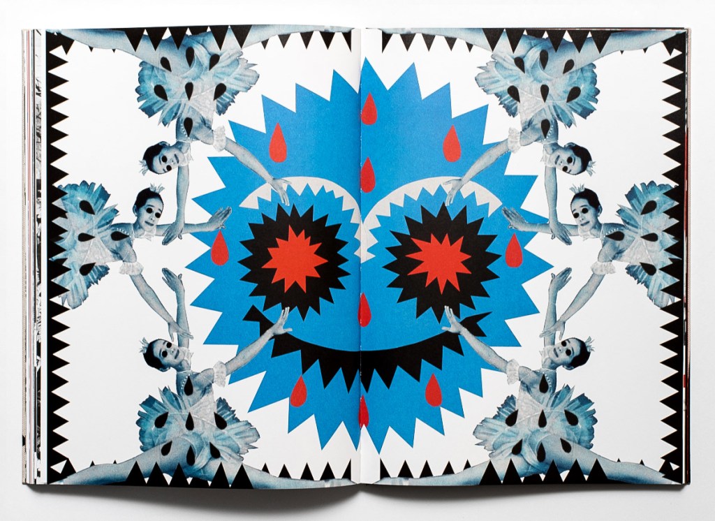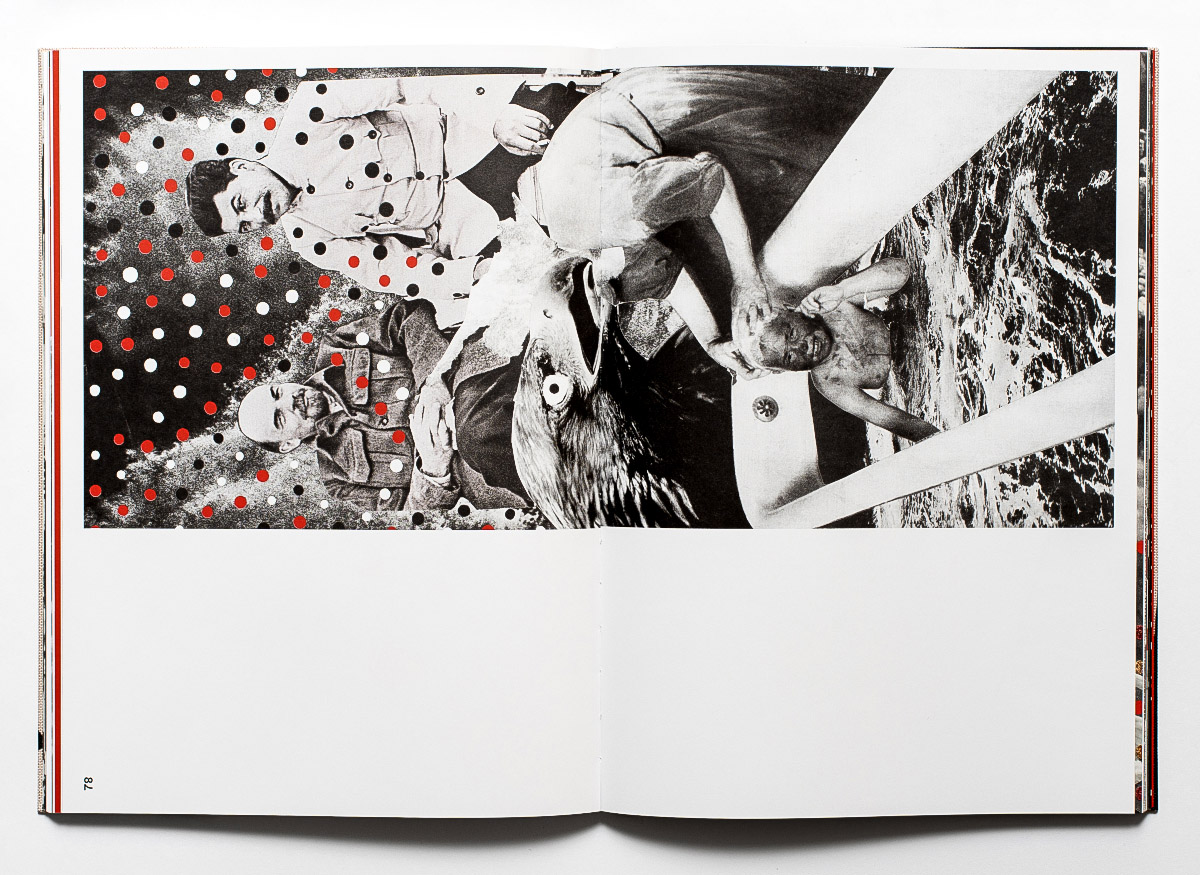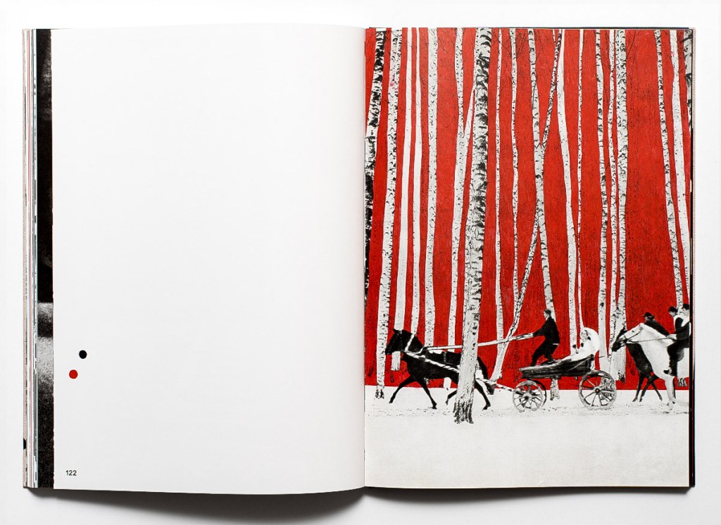 Yet when looking at these surreal, at times overtly disturbing images of the marching soldiers or Politburo leaders, one can sense not only anxiety, horror, or confusion at the past empire that succeeded in keeping several generations brainwashed by the state’s destructive ideology. These meticulously cut, punctured, and reassembled “documents” also reflect Sviatahor’s anger and fatigue at the historical loops currently unfolding across the region, at societies again choosing indifference to growing threats, and at entire nations sliding back into alienation, polarization, and fragmentation. These feelings appear to be so intense that the artist boldly invites each of us to join her in the transgressive act of deconstruction: a collage at the center of the book can be dismantled into dozens of separate stickers that repeat the contours of the ballet dancers. Not only can one destroy something obsolete but one can also form something new.