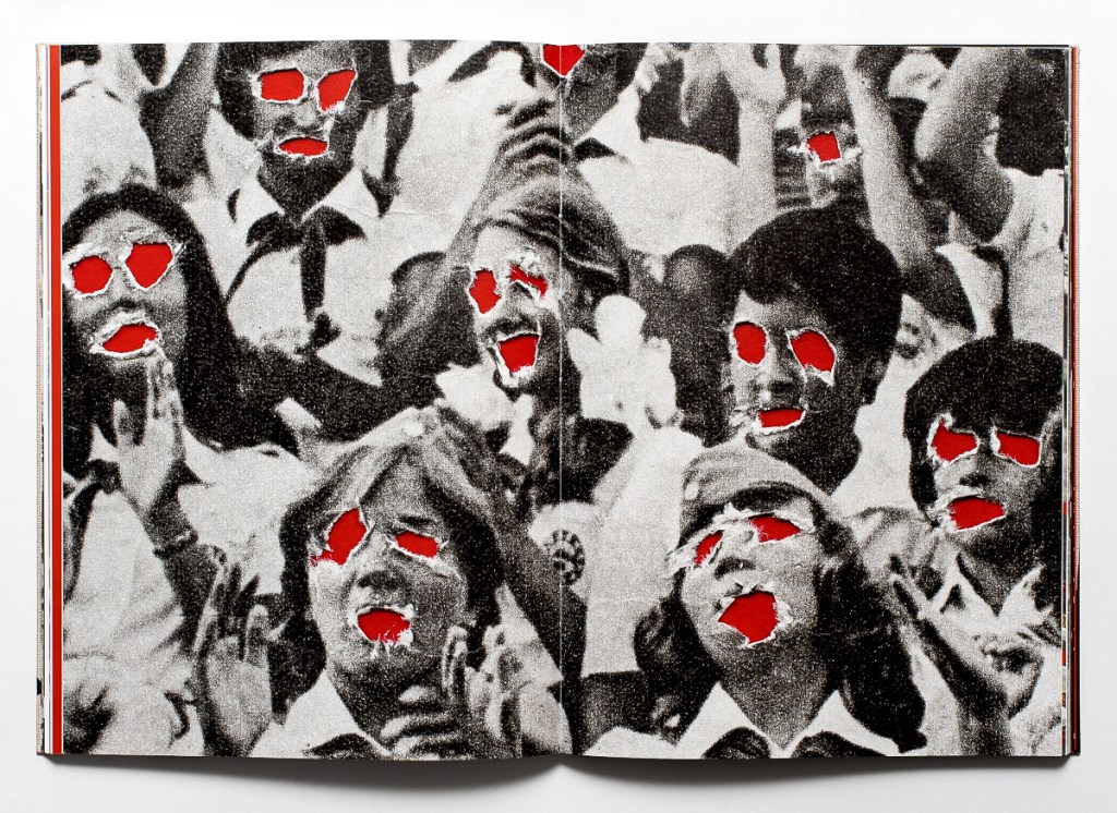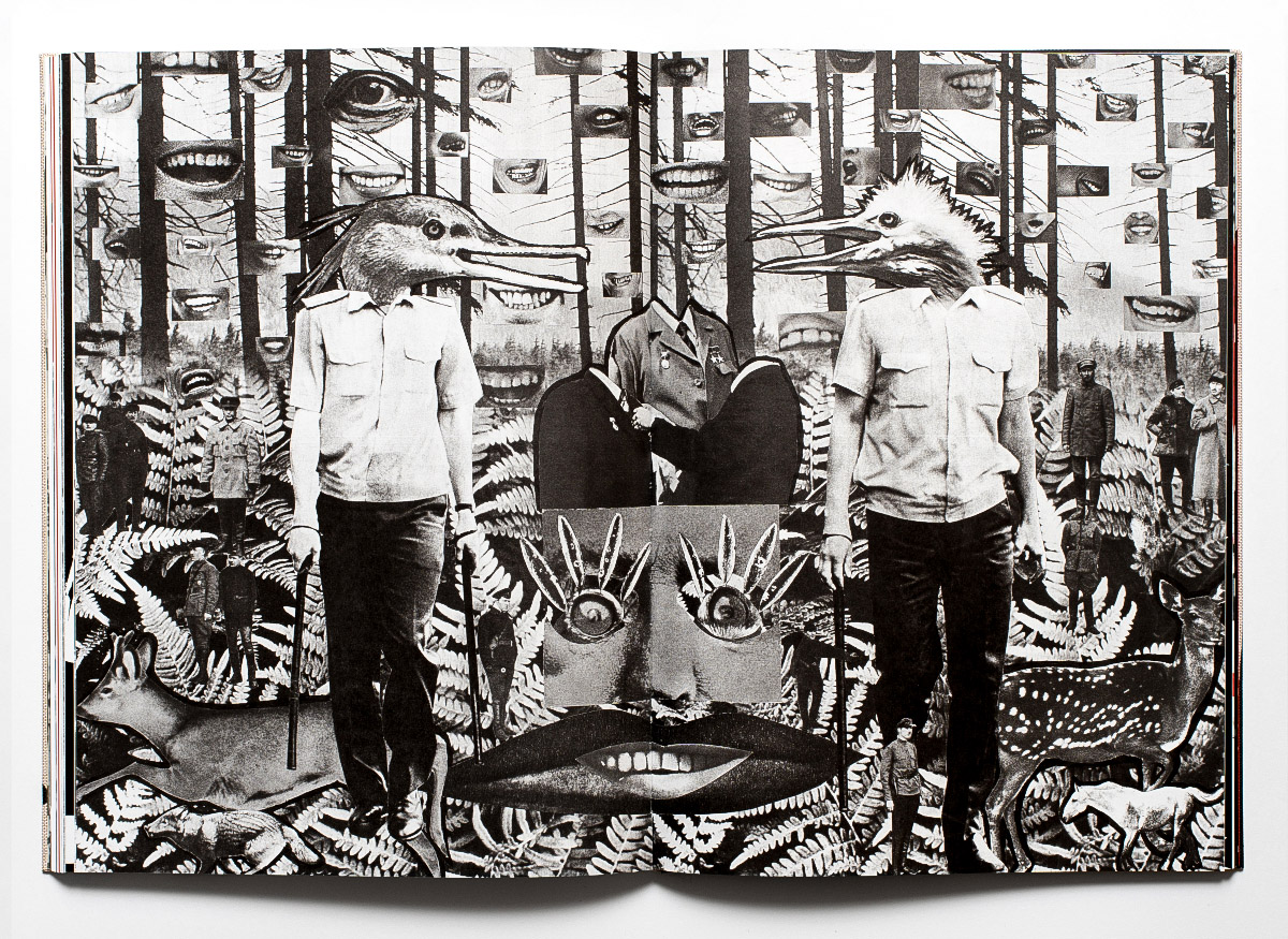 All the images in EVERYBODY DANCE! are assembled from Sovetskoe Foto, the sole specialist photography magazine published in the Soviet Union from 1926 to 1991, which appears as a perfect source of inspiration (or, actually, anti-inspiration?) for conceptual interventions. What was meant to convey unity, optimism, and the model citizen as imagined by the Soviet state, in the artist’s hands turns into an eerie crooked mirror that magnifies the absurdity and hypocrisy of Soviet ideology.