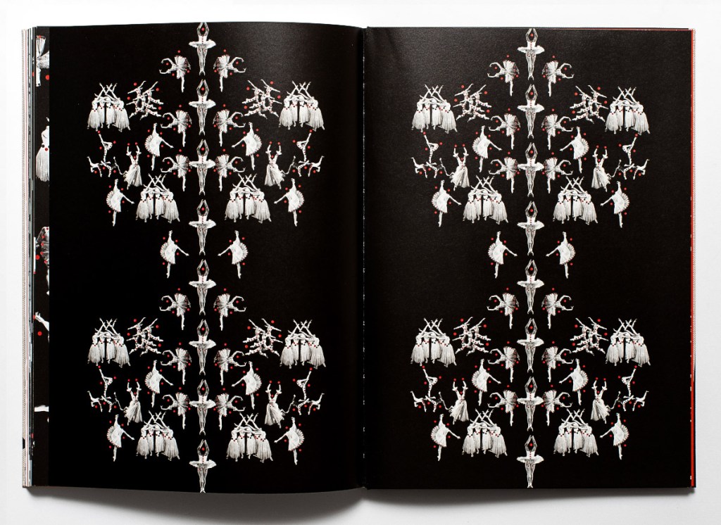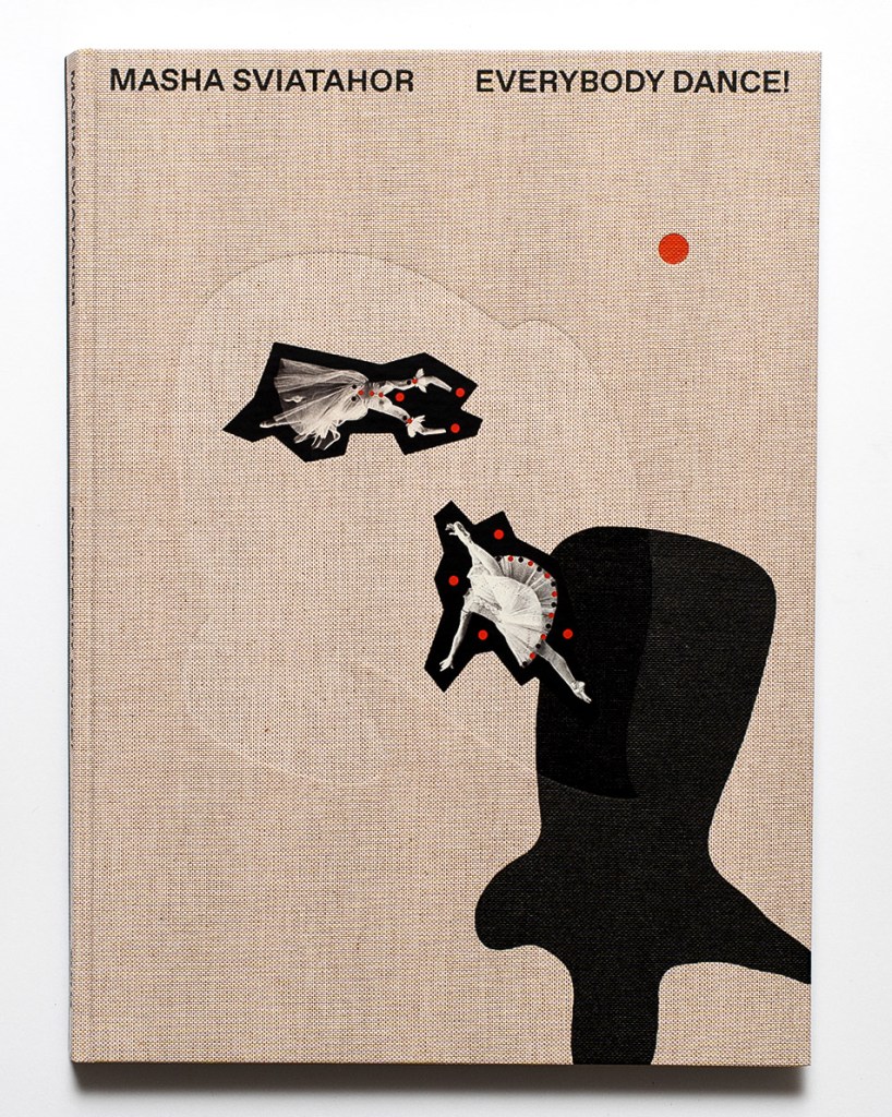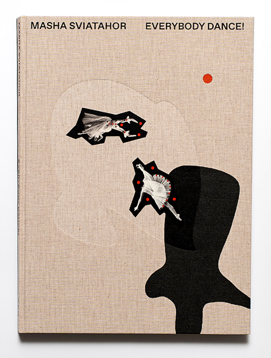 At first sight, the large-format canvas-covered monograph feels like a volume one might accidentally discover in the rare-manuscript section of a provincial library that never fully left the communist era. Rough, heavy, and impossible to casually leaf through without placing it on the table, EVERYBODY DANCE! requires a special attitude – probably, as any book aspiring to address painful collective history does. In Sviatahor’s case, this history has long remained unexamined, passed silently from one generation to the next like an inherited Soviet dinnerware set no one ever used or really liked. Immediate reference to the last days of the USSR is reinforced by the customized look of the cover: every copy is unique due to ballet dancer stickers manually attached to it in various constellations by the artist.