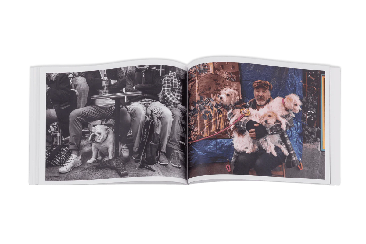 Tilton’s one-on-one contact with dog owners, street musicians, restaurant workers, families on the street is detailed and composed to capture the emotion of the moment. She peeked into the doorway of a restaurant at closing time, seeing a chef and waiter resting after what may have been a long day, not posed, not touristy, but a back door with two tired professionals. And then, the bulldog sitting under the table between his owner’s legs…we’ve probably all imagined or seen this and are immediately transported to that table.
