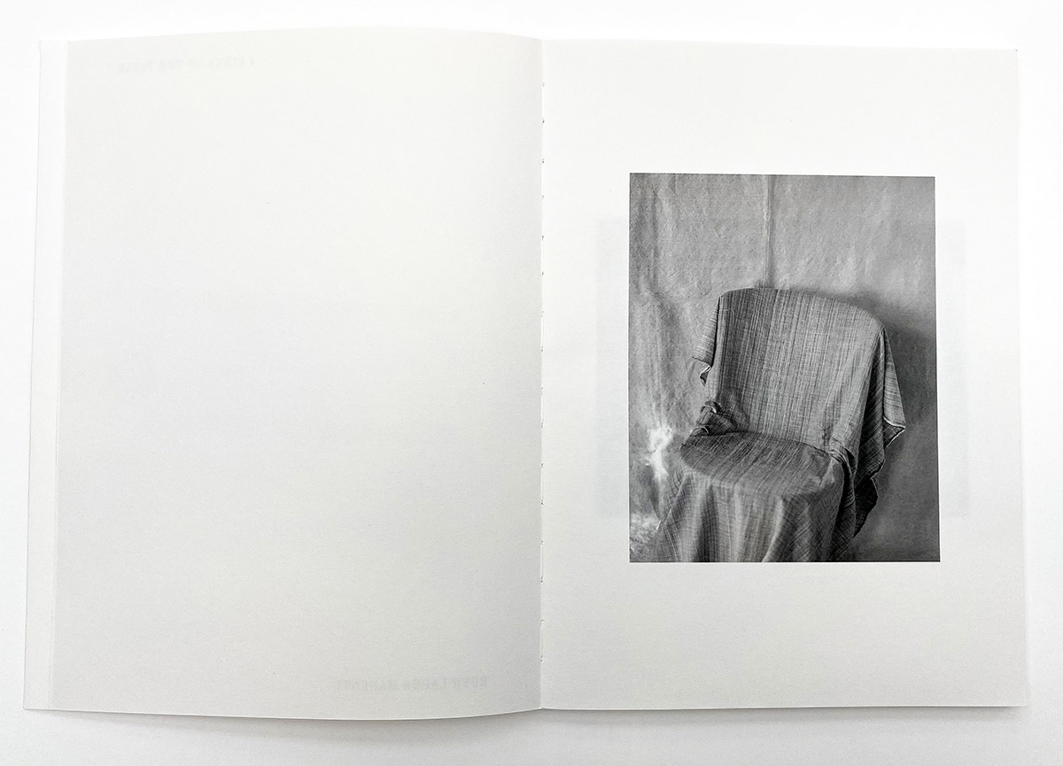 The first photograph in Ruth Lauer Manenti’s new book, 4 Sides of the Table, shows two rulers placed side by side. Both enter the picture from the right, their full-length cut off by the edge of the frame. They look as though they’ve been around for decades and are chipped and weathered with age. It’s an unexpected picture, a flat and blunt composition, but also curious and poetic. The tones are soft and rich (a defining characteristic of Manenti’s photographs), and the intention is clearly metaphoric. The two of them appear like a parent and child (a lovely idea for these tools of measure), the longer, older ruler overseeing the smaller one. The next pictures in the book show an empty chair delicately covered with an old cloth, followed by an antique portrait mounted on the wall, light distorting across the surface of its glass. In conversation with these, the first picture becomes much clearer; the rulers aren’t there to measure the faded inches marked on their surfaces, but rather to measure presence, absence, and the passage of time.