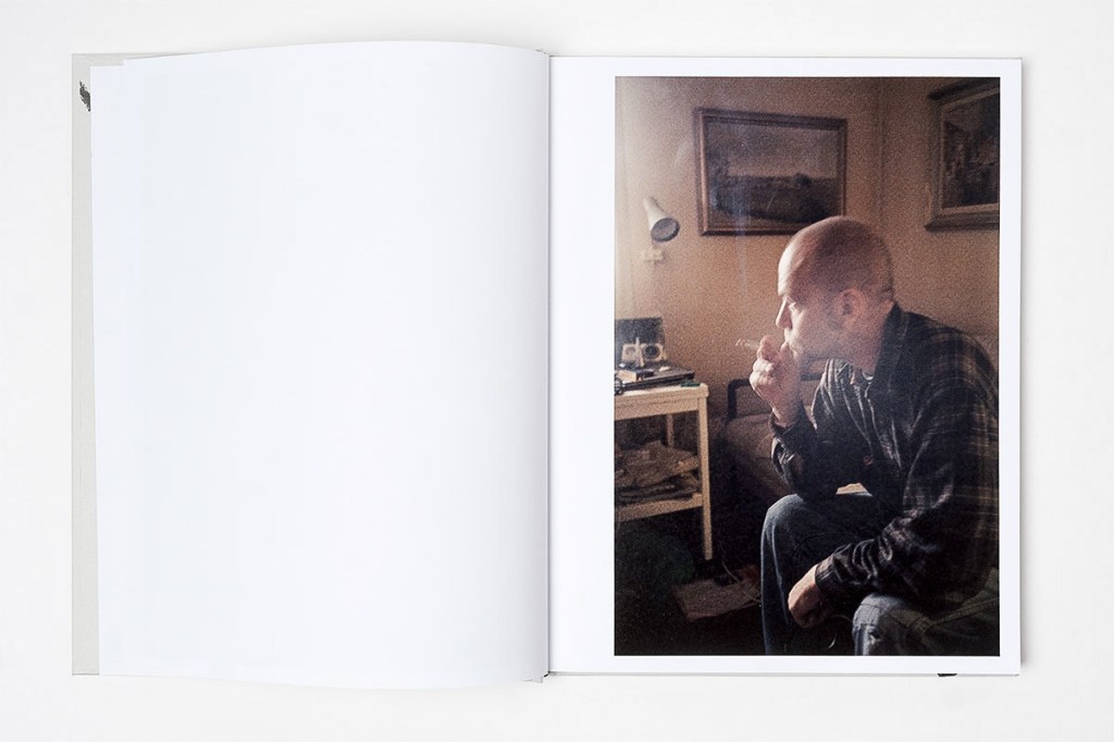A medium-format book, with its light-brown cover reminiscent either of the autumn dull sky over the Swedish capital or the faded tones of objects long abandoned in a backyard, it features several types of images – all centered on the figure of the photographer’s father. Some are small, with blurred contours of the captured objects typical of late-1990s instant photography; others, by contrast, are nearly full-page, black-and-white and sharp. The difference in the form guides the reader through different periods of the man’s life: of his youth, when drinking functioned as a social ritual or a seemingly “safe” habit allowing to unwind, so he posed with a glass in hand – sometimes with relaxed casualness, sometimes with festive pride – and gradually into older age, when the circumstance and intention behind alcohol consumption changed dramatically.