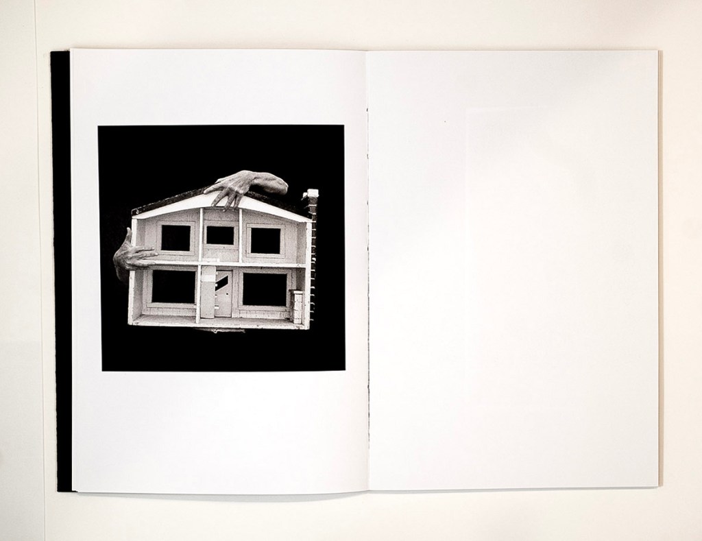 Another group of images that occupies a central place in Birnbaum’s narrative consists of black-and-white, staged, almost theatrical photographs. Within this sequence, the symbol of home becomes prominent: a dollhouse once belonging to the young Andrea, an abandoned building partially reclaimed by overgrown vegetation, half-open (or half-closed?) doors, and shadowed windows. Here again, the viewer is invited to turn inward, searching for personal associations. These open-ended, archetypal images may evoke nostalgia, the irreversibility of the past, sorrow – or, vice versa, suggest a readiness to let the past remain where it belongs. After all, should we not move forward rather than dwell on what cannot be undone, blaming ourselves for the spilt milk?