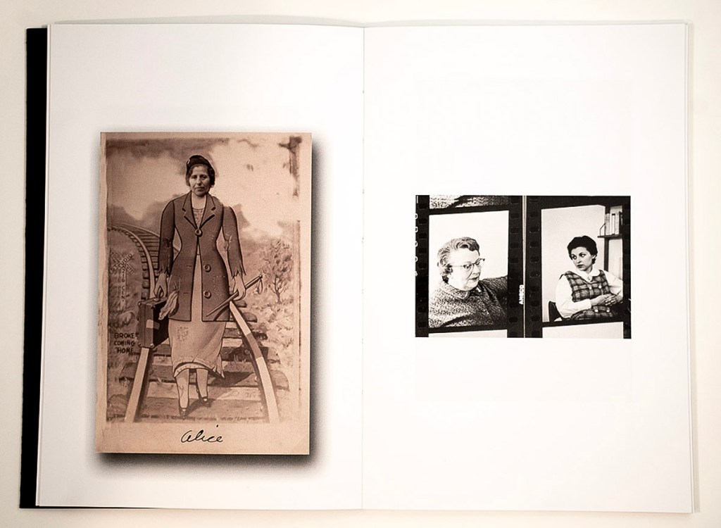 The universality of a project initially rooted in personal experience is achieved through the wide range of artistic strategies Birnbaum employs in revisiting her family archive, including photographs made by her father, himself an amateur photographer. Re-appropriation takes place through collage, selective cropping, and enlargement, processes through which the images are stripped of their original context and enter a realm that might be described as mnemonic poetry. Particularly illustrative is a family group photograph taken at a cousin’s wedding, in which Andrea appears in the front row as a child. Beside her sits her grandmother – solemn, reserved, her hands resting on her knees, fingers tightly interlaced. Had Birnbaum not cropped, enlarged, and reinserted a small fragment of this image into the right side of the page, the silent drama unfolding within the frame might have gone unnoticed. A sincere delicate gesture – the girl’s fingers reaching for her grandmother’s – suggests the emotional restraint that shaped the family atmosphere. Through this act of attentive looking, memory is reactivated and the contours of formative trauma begin to emerge.