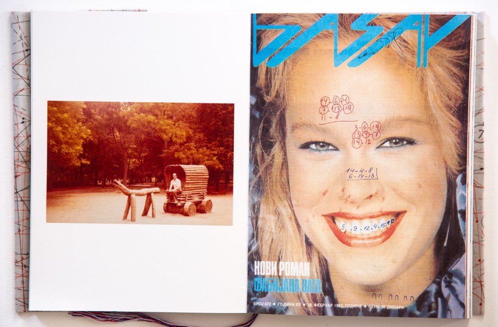 We confront found documents, such as the magazine covers that hint of a Yugoslavia origin, which have been subsequently written on with text and numbers that beg for some kind of meaning. We can guess that these magazines were to help her grandparents understanding of events occurring in their home-land, while the additional writing implies some secret messages or code. These documents might have revealed their secret to Cocano, while they can further confound and confuse us, the reader.